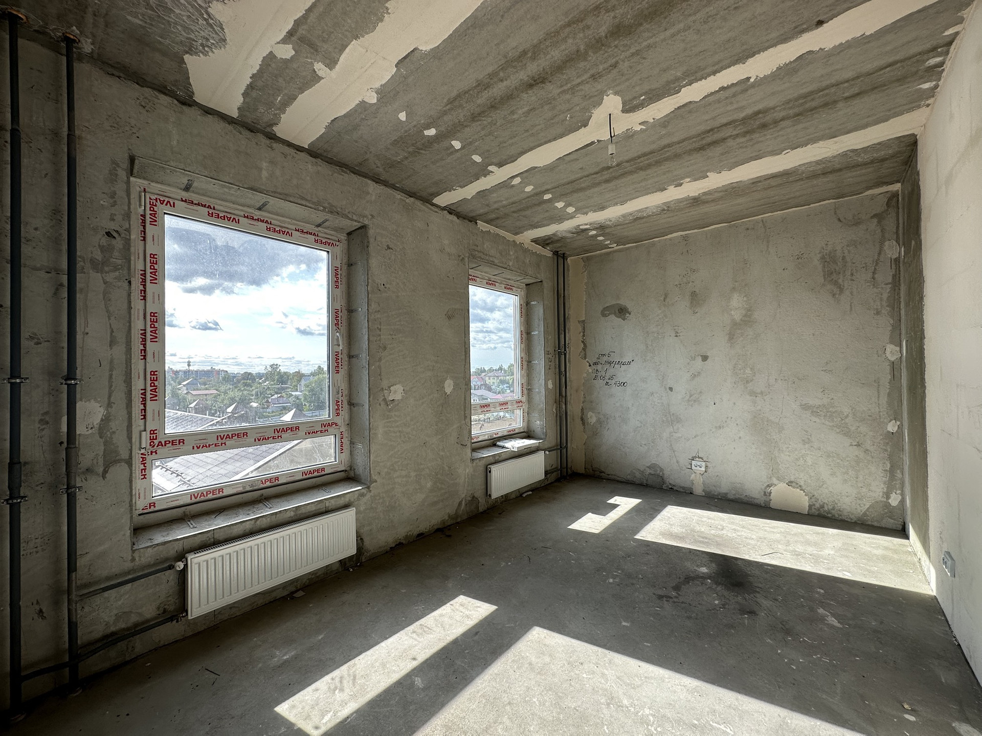 Объект в предчистовой отделке, сделана разводка электричества на розетки и выключатели. Установлена батарея-сушка, выведены и повешены радиаторы.