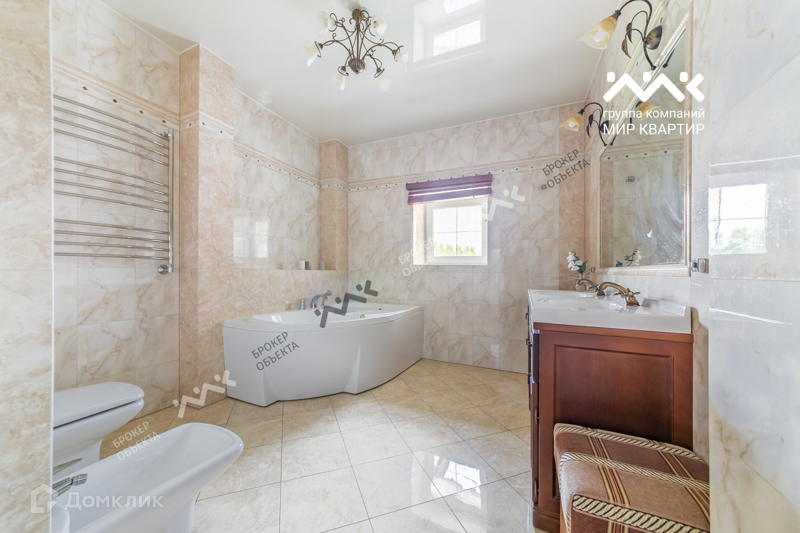 Наполнение дома соответствует элитному статусу и включает в себя крытый бассейн, сауну, спортивный зал, камин, несколько гардеробных комнат, кладовки, просторную постирочную, лестницу с мраморными ступенями и кованными перилами, потолок украшает лепнина ручной работу и ручная роспись, две ванные комнаты, полностью оборудованная кухня, открытая терраса на втором этаже, и многое другое. Мебель частично остается.