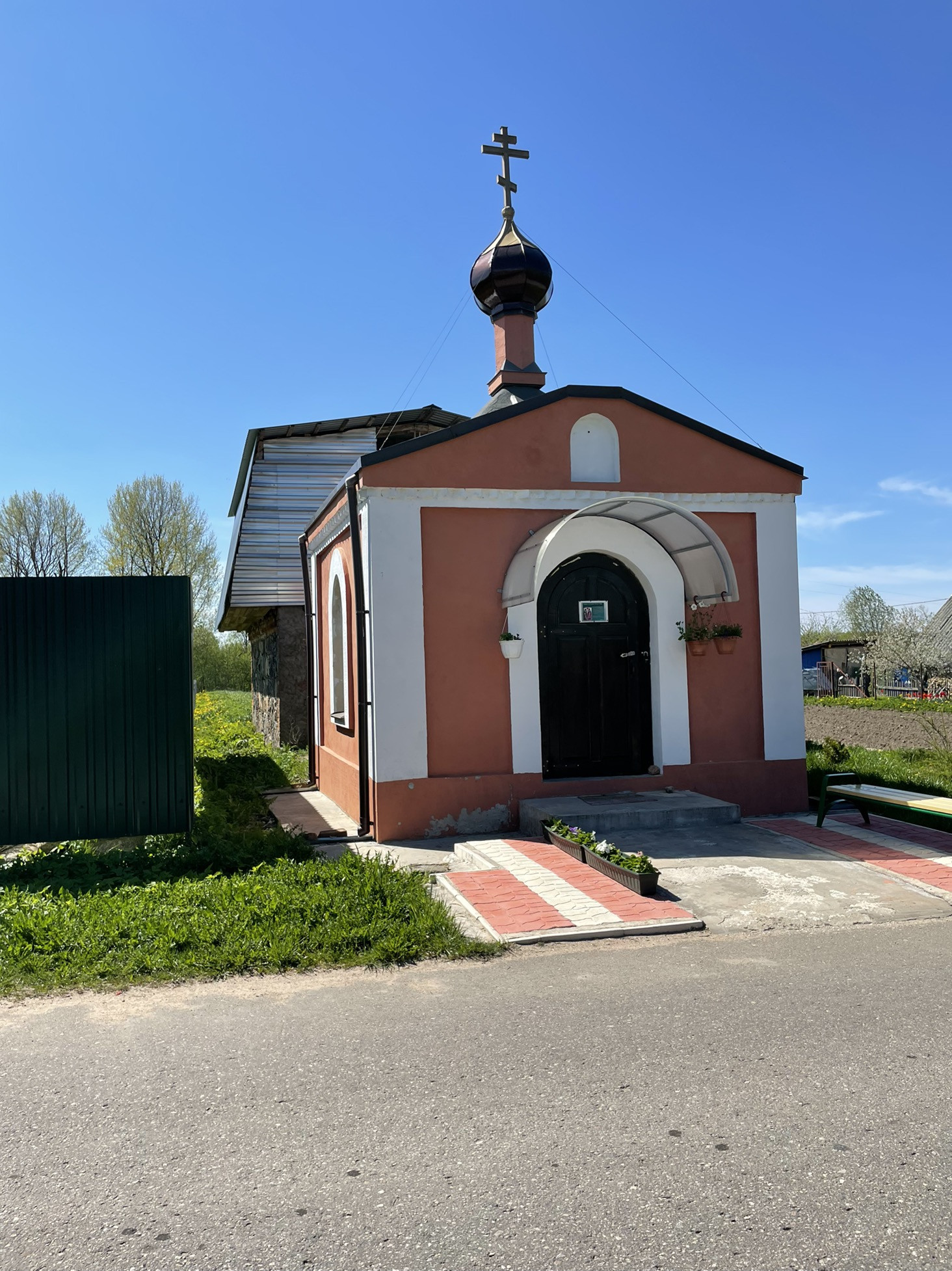Рядом автобусная остановка, детская площадка, магазин, часовня.
