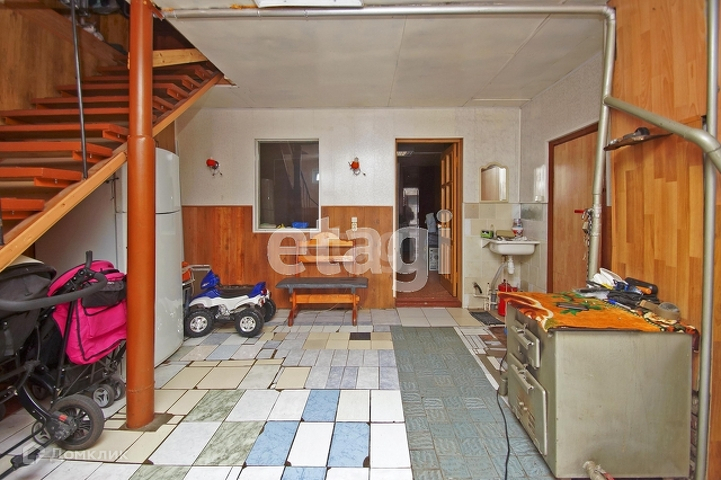 На первом этаже: гараж, котельная, подсобное помещение. Второй этаж жилой: Кухня, просторный коридор, 4 комнаты, туалет, ванная, веранда.