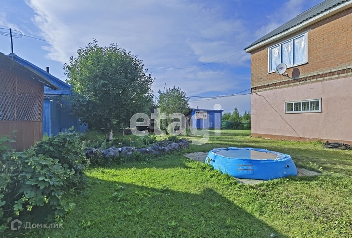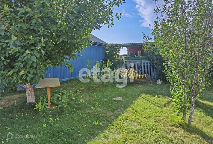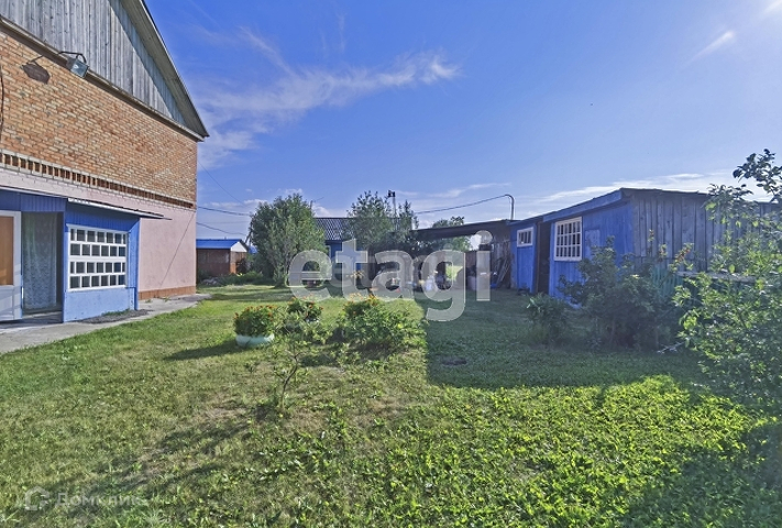 На заднем дворе зона отдыха с беседкой, баней и газонной травой. Есть сараи для разведения животных (куры, свиньи). За оградой место для посадки. На территории есть яблони, смородина.