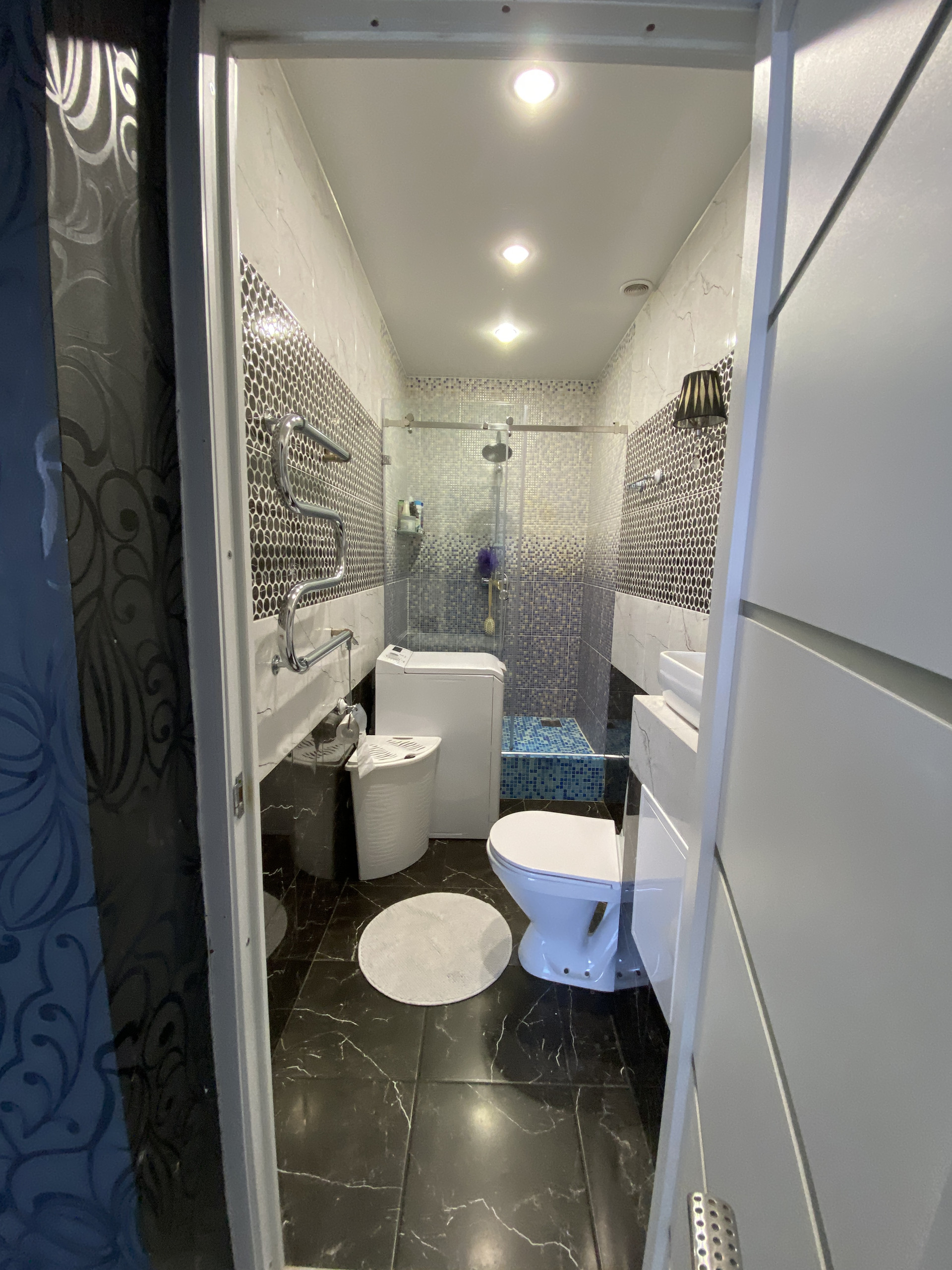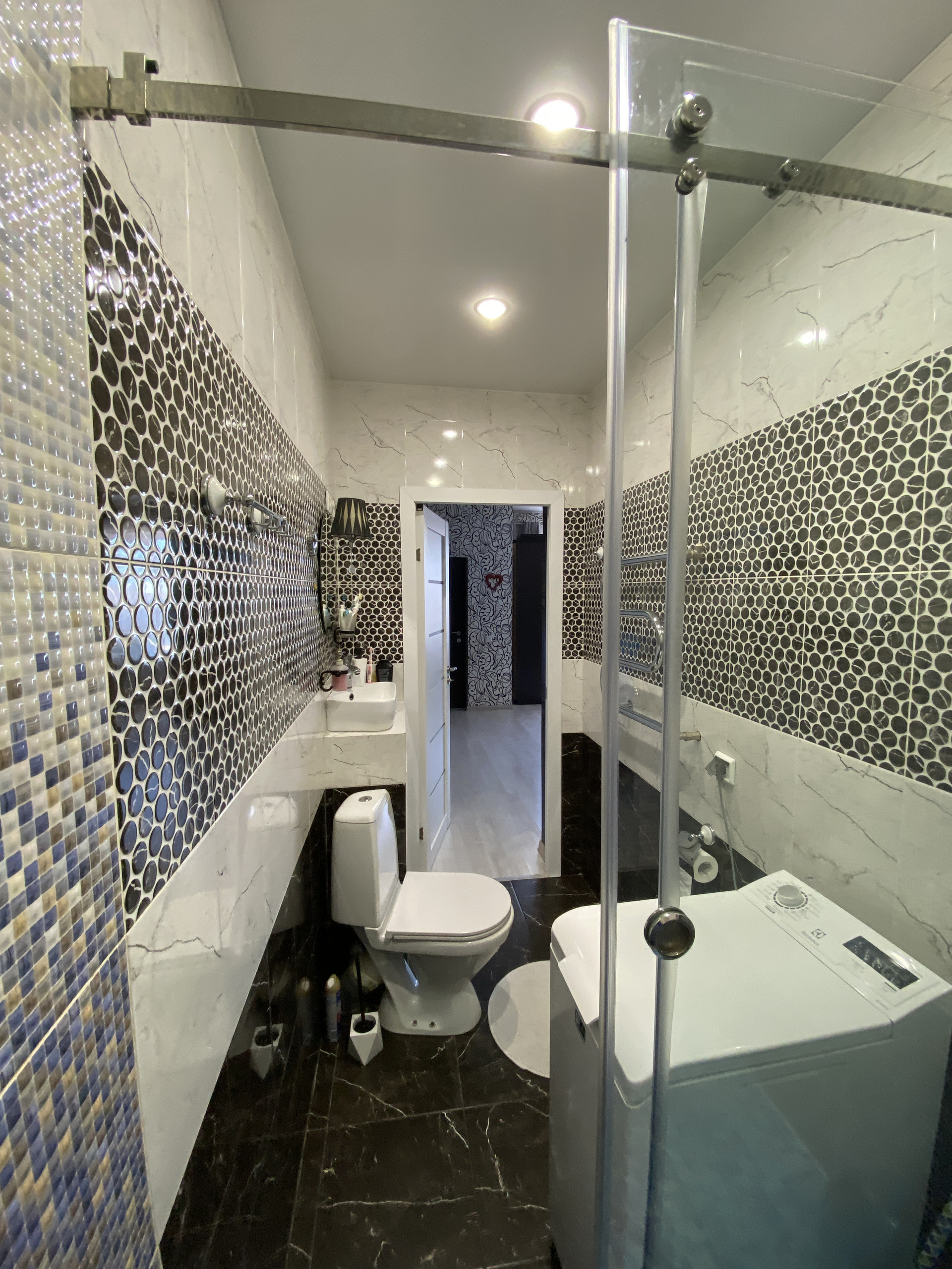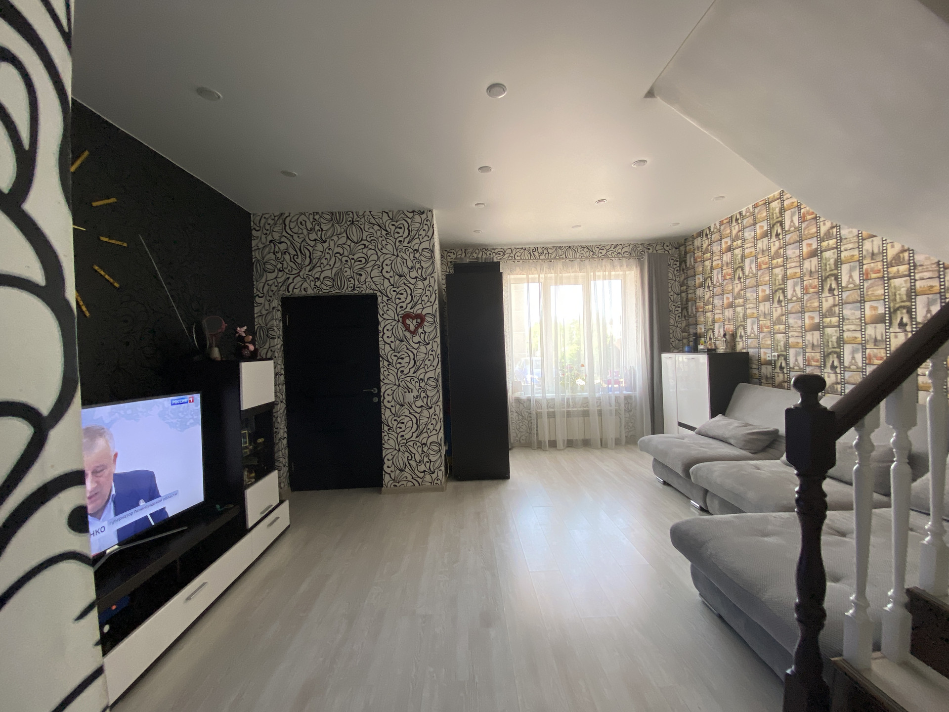 - 2 совмещенных санузла: 1 этаж душевая кабина (поддон плитка), и стеклянная ширма (заказная), 2 этаж ванна (остается тумба, зеркала в обеих с/у). Вся сантехника немецкой фирмы AM&PM.