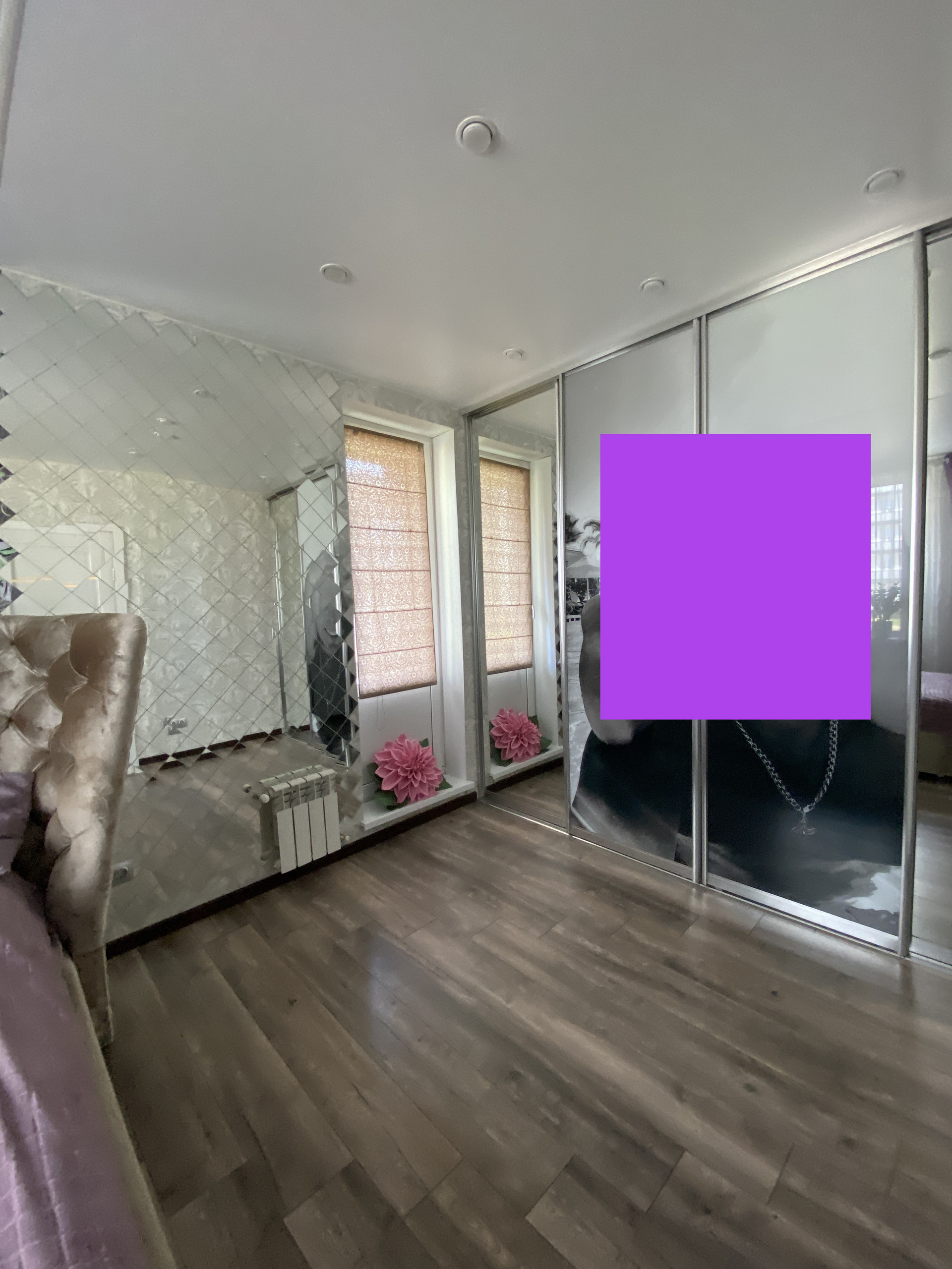 - спальня на втором этаже 15.8 кв.м, остается покупателю встроенный большой шкаф (делался под заказ) и карниз, окна спальни на восток,