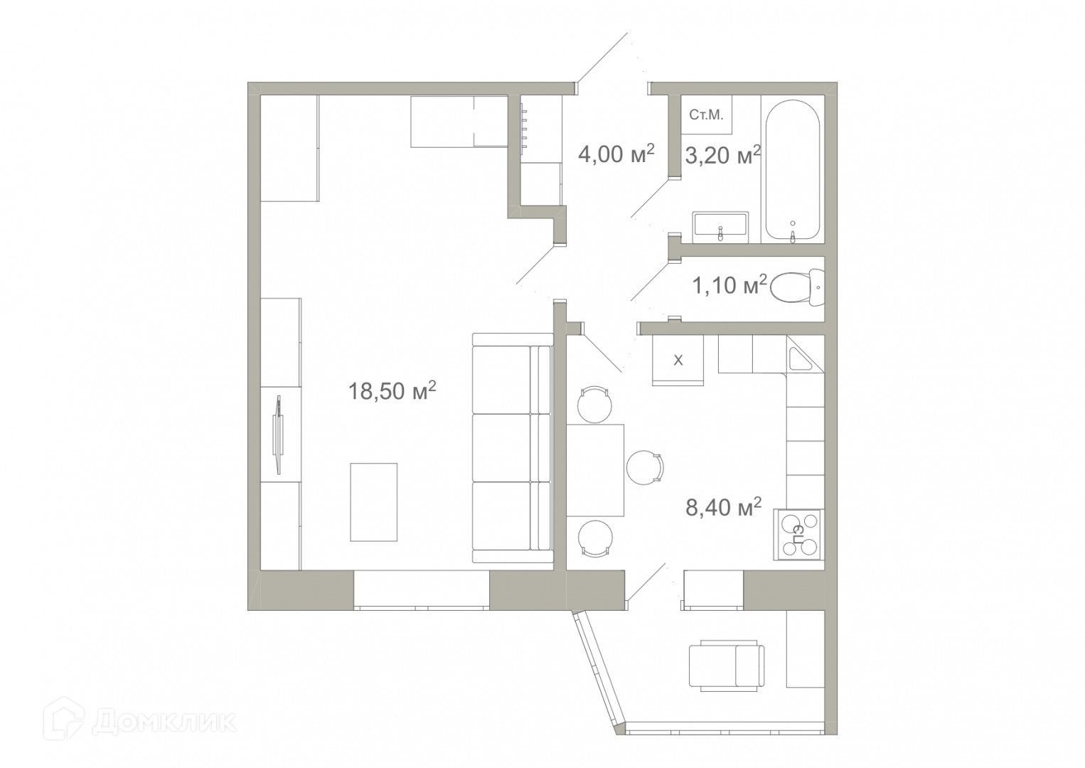 Общая площадь 35.2 м2