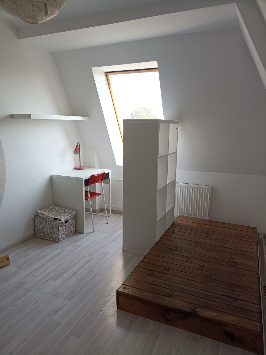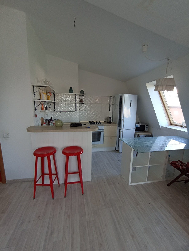 Мансардный этаж. Планировка: жилая комната и гостиная, объединенная с кухней.