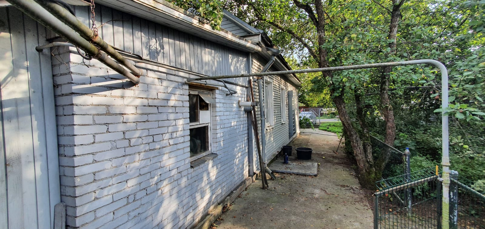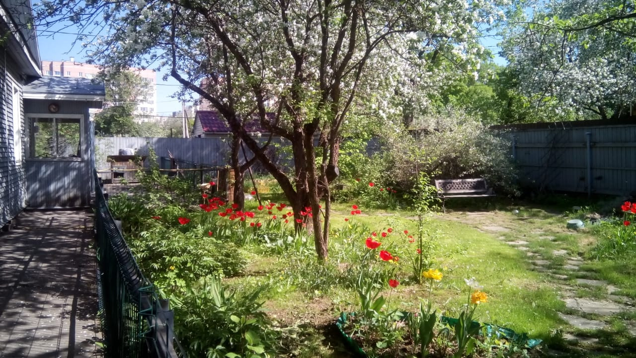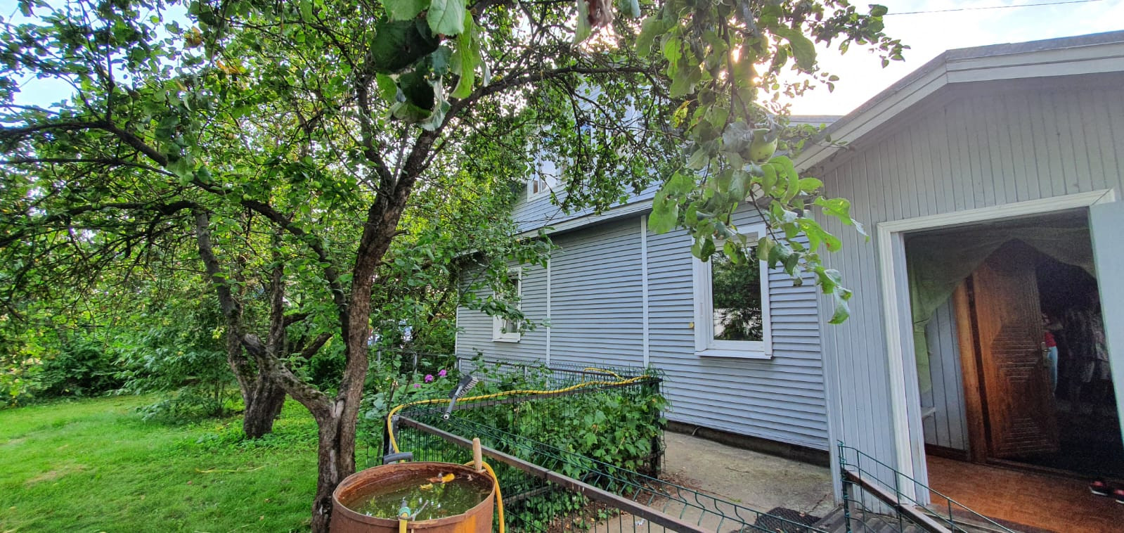 Участок утопает в зелени и плодовых деревьях. В саду каждый год собираем урожай с 3х видов яблонь, белая и красная слива, вишня, малина, смородина, крыжовник, клубника. Сад огорожен новым металлическим заборчиком.