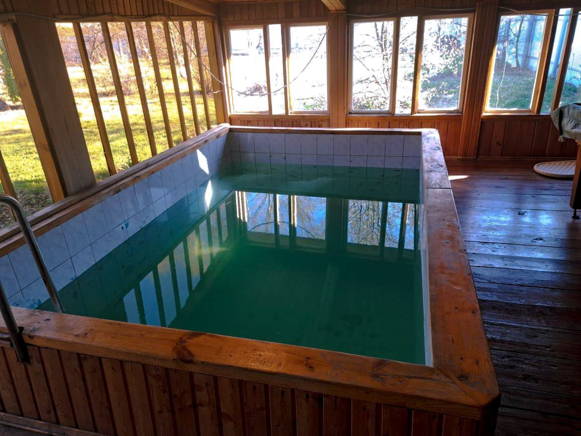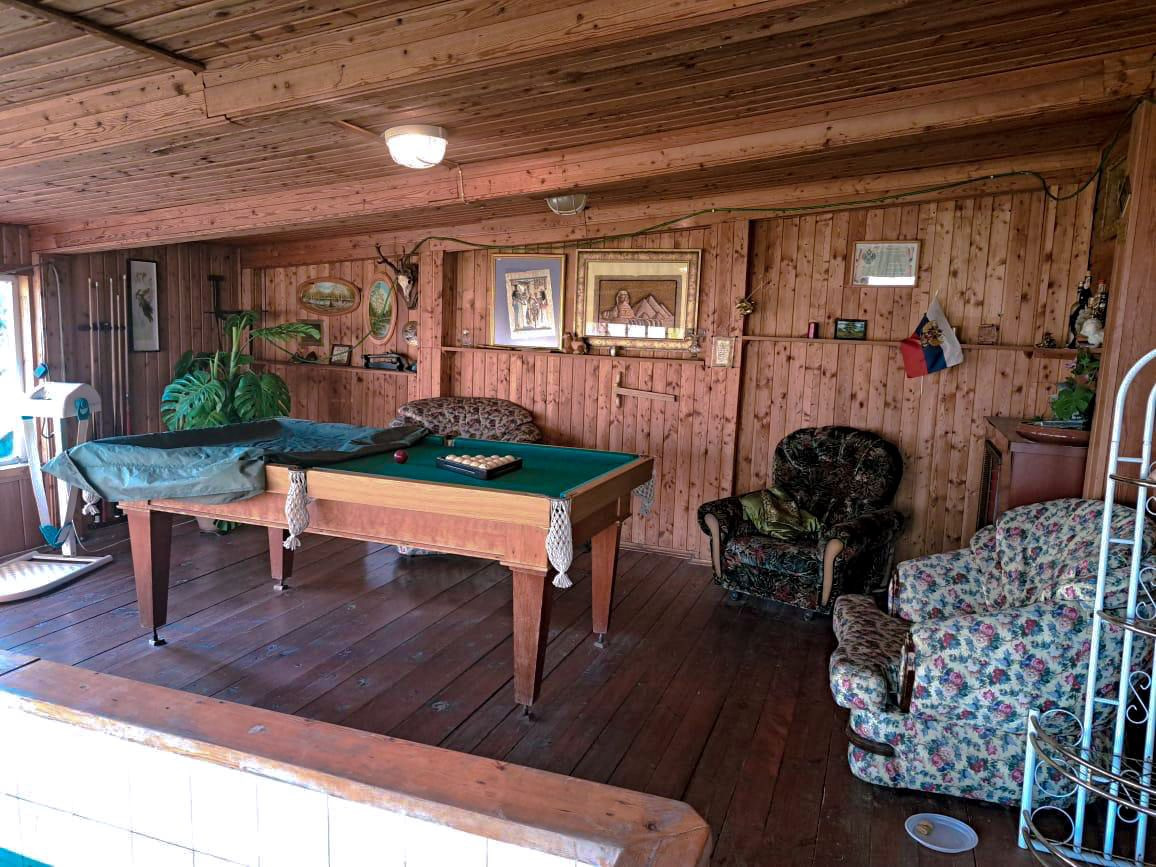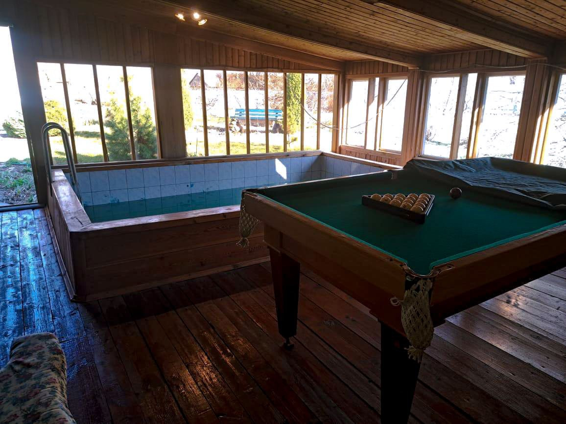 * Банный комплекс с предбанником, помывочной и парилкой (печка кирпичной кладки, на дровах) и зоной отдыха с бассейном 2х4м, бильярдом);