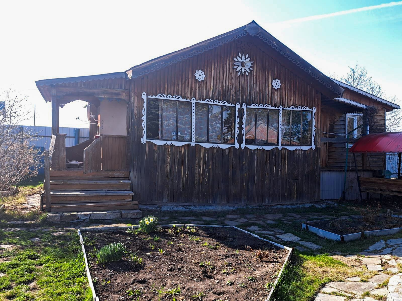 - Огород с грядками;