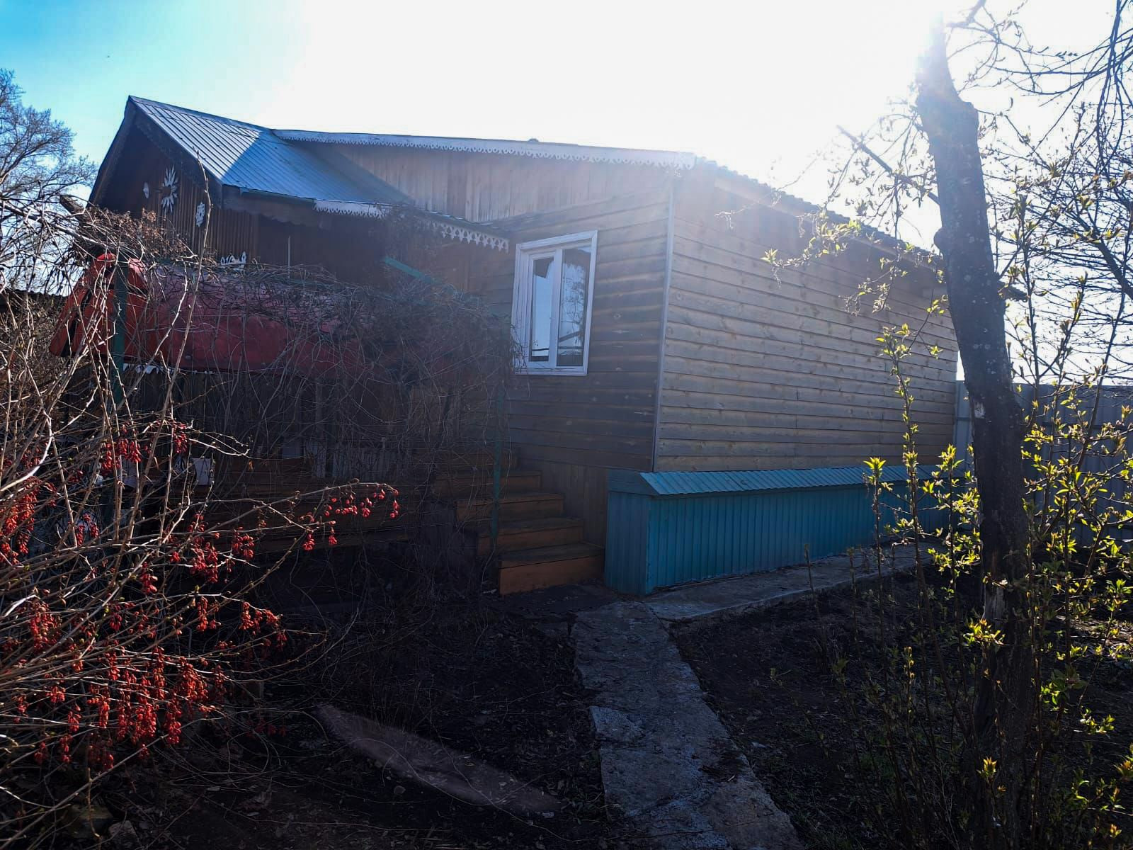 - Плодовый сад (яблони 8 шт., груша 4 шт, жимолость 4 шт., слива 6 шт., персик 1 шт., вишня, кусты крыжовника, смородина, малина)