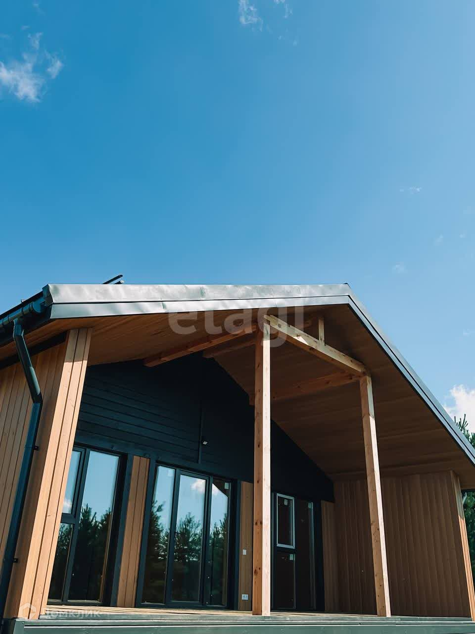 • подведены все коммуникации; ПЛАНИРОВКА: • просторная кухня -гостиная с панорамным остеклением 33,4 м.кв, высокие потолки гостиной , в коньке достигающие 4,7 метра. • 1 спальня 11,4 м.кв; • 2-е спальни 10,5 м.кв.; • сан узел 5,4 м.кв. Терраса - 20,4 м2. КОММУНИКАЦИИ: • вода (колодец или скважина); • канализация (септик или биостанция). ОТДЕЛКА: