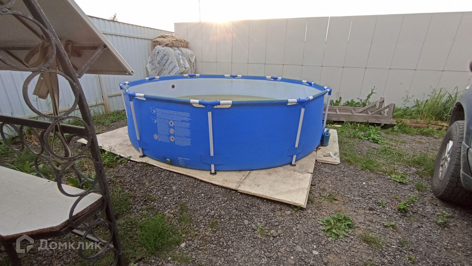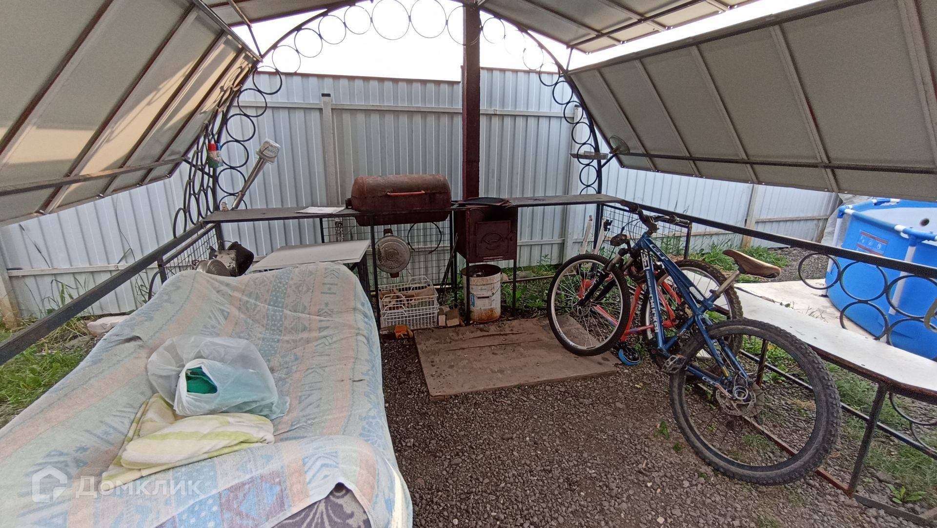 На участке расположена мангальная зона, теплица, хоз. домик, бассейн.