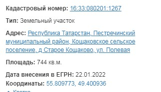Кадастровый номер: 16:33:080201:1267