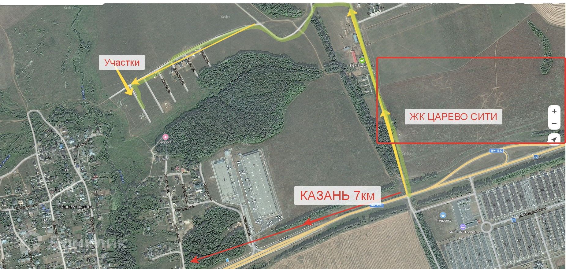 Самое привлекательное - расстояние до Казани всего 16 км, что займет всего 12 минут на автомобиле.