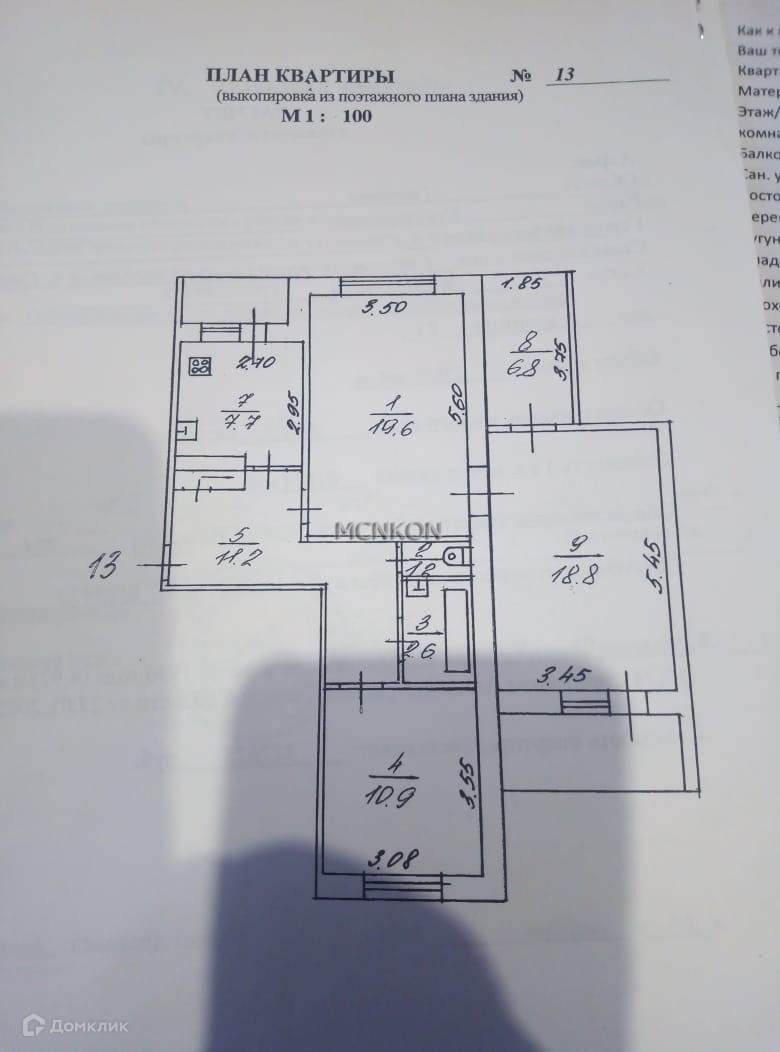Общая площадь 79.4 кв.м площадь комнат 19.6+6.8+18.8+10.9 кв.м. Есть балкон и лоджия, раздельный санузел. Планировка изолированная. В квартире косметический ремонт, на всех окнах стеклопакеты, металлическая дверь, установлены водонагревательный бак, счетчики на газ и воду, лоджия и балкон застеклены. Квартира расположена на 5 этаже 5 этажного  панельного дома. Центральное отопление. Горячая вода из центрального водоснабжения, есть обычная ванна.