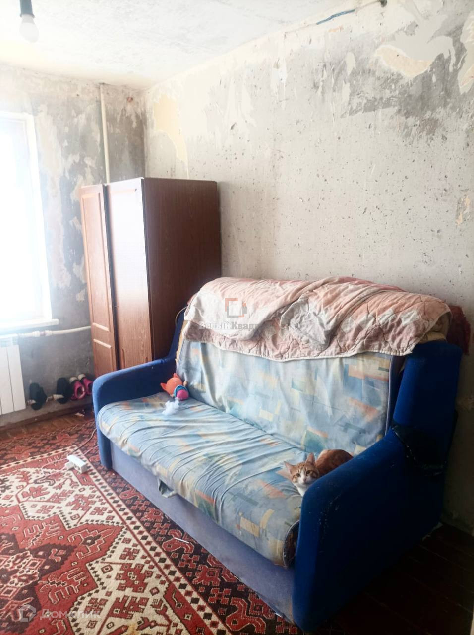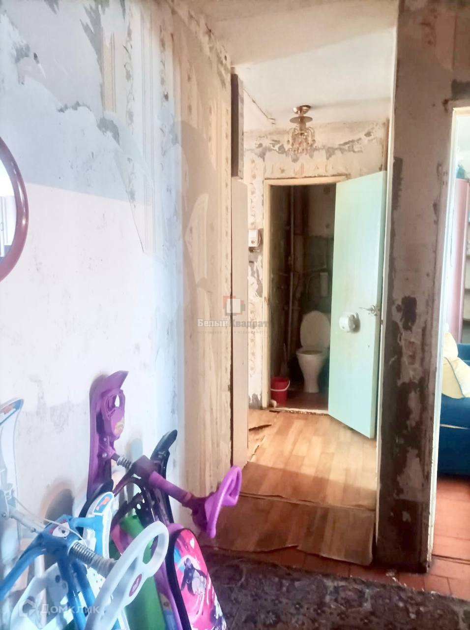 Начали готовить под ремонт, ободрали частично обои.  Можно в принципе заехать, жить и постепенно делать ремонт в квартире по мере ваших возможностей.