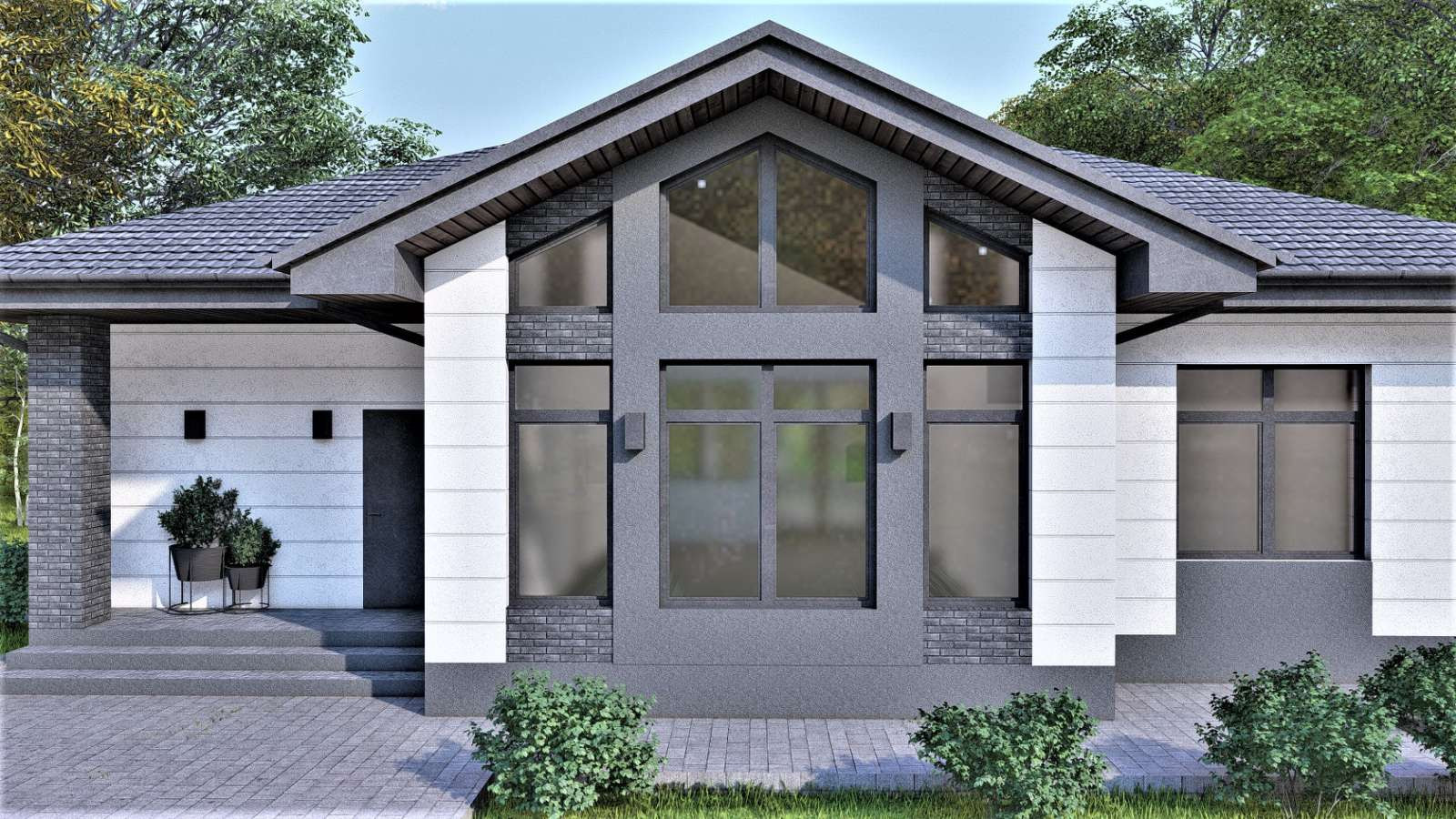 Большие оконные проемы. Окна энергосберегающие, с усиленным оконным профилем. Цвет графит.