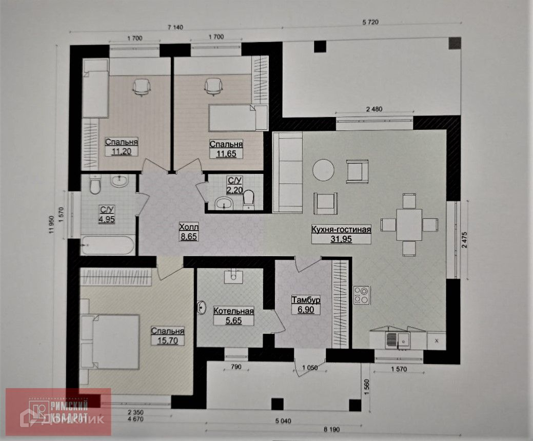 Хорошая планировка: 3 спальни, просторная кухня-гостиная с выходом на террасу, удобная прихожая, котельная, 2 санузла.