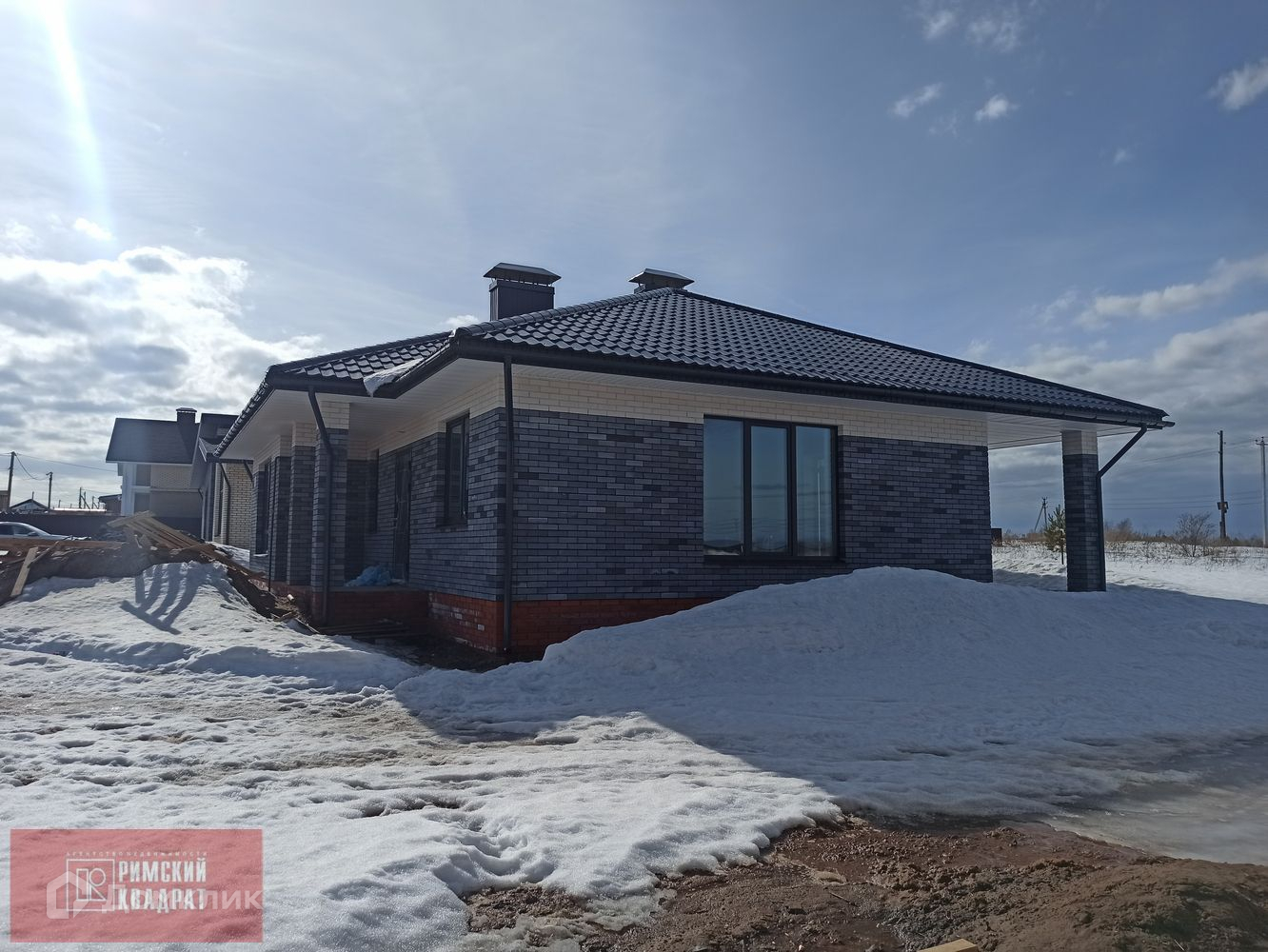 Технология строительства, проверенная временем: стены дома из газоблока, облицованного кирпичом. Крыша металлочерепица. Установлена водосточная система. Увеличенные оконные проемы, поэтому в доме много света.