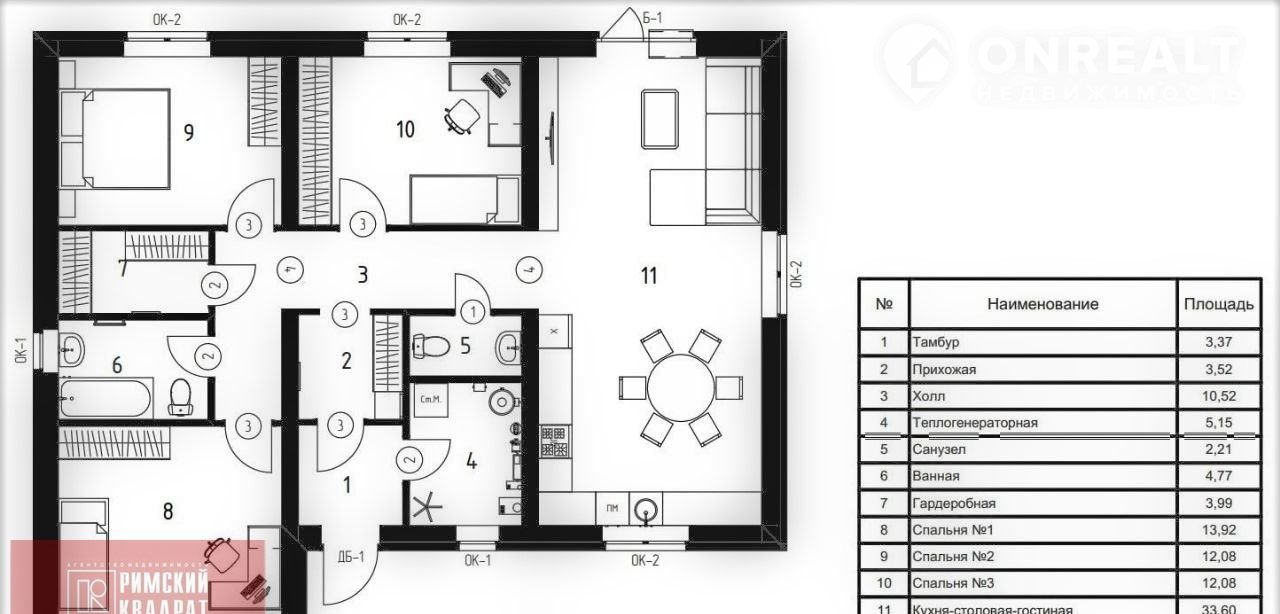 Хорошая планировка: 3 спальни, просторная кухня-гостиная с выходом на террасу, тамбур, котельная, 2 санузла, гардеробная.