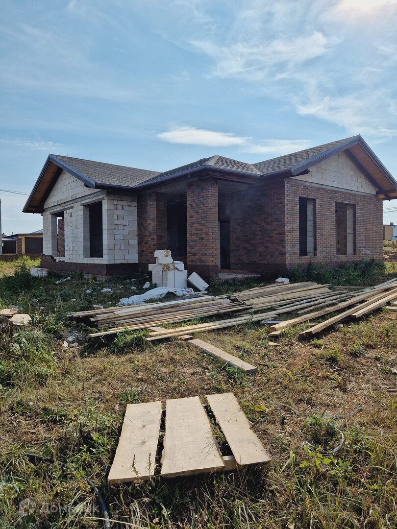 Завершение строительства 2023 год. Материал стен газоблок, отделка облицовочный кирпич и декоративная штукатурка, внутри под чистовую отделку. Удобная планировка с просторными комнатами, гардеробными и сан узлами. Имеется отдельная котельная. Все необходимые коммуникации ( газ проходит улице, подводка к дому бесплатно), септик из трех колец, скважина 60 м. Кровля мягкая черепица. Вместительный гараж с автоматическими воротами.