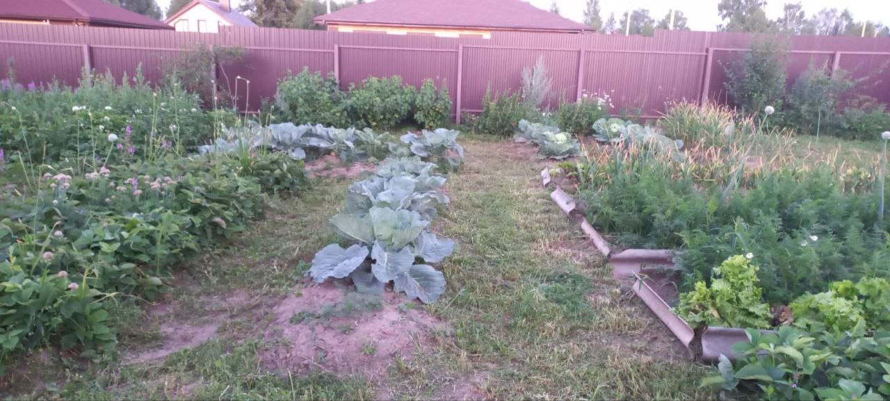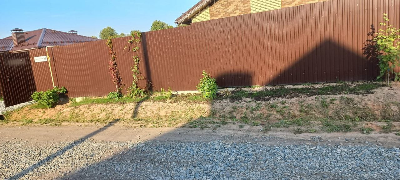Вся территория участка огорожена забором из профнастила.