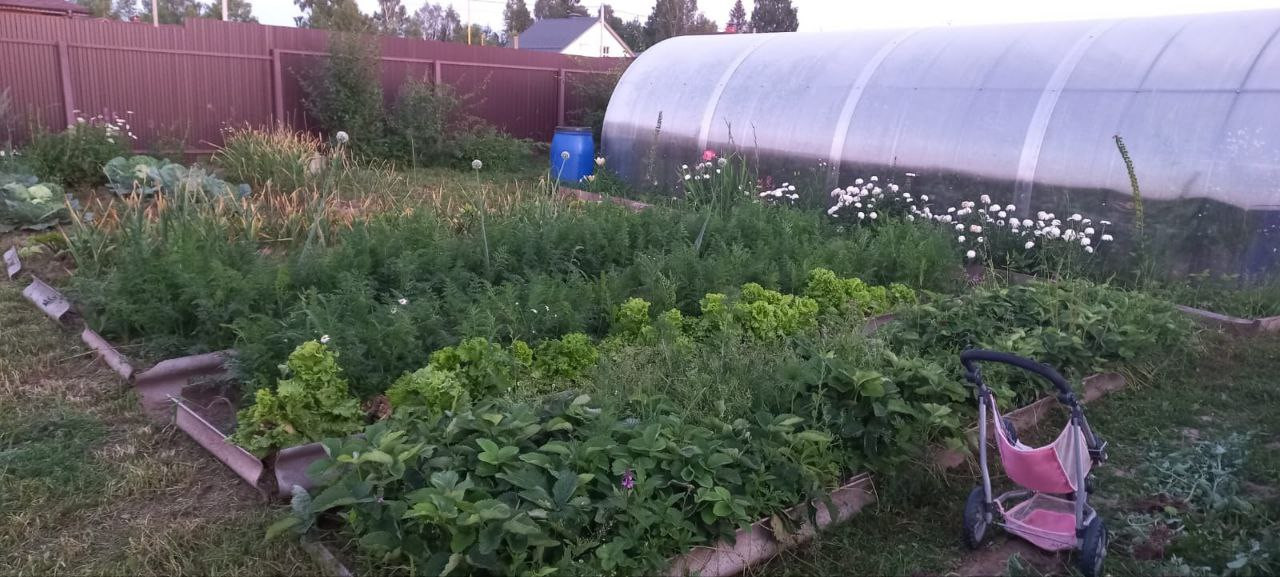 Земельный участок ровный и облагороженный посадками, теплицей и цветником.. На территории находится бревенчатая баня с чугунной печью. Для удобства топка находится с предбанника.