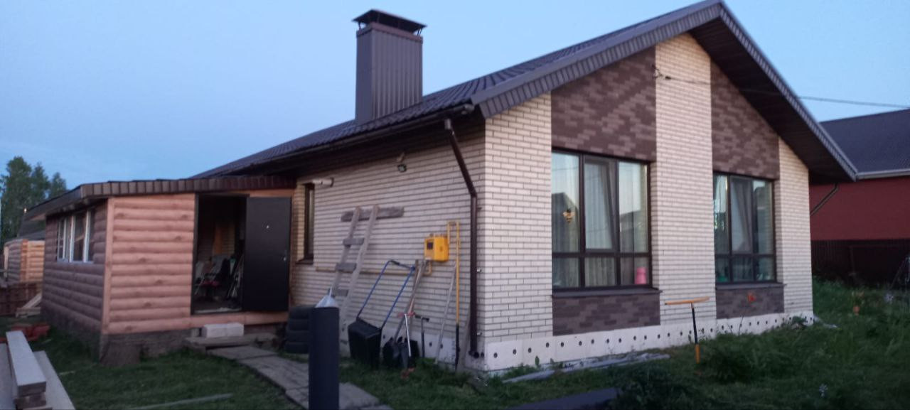 Дом из газоблока, облицован кирпичом.