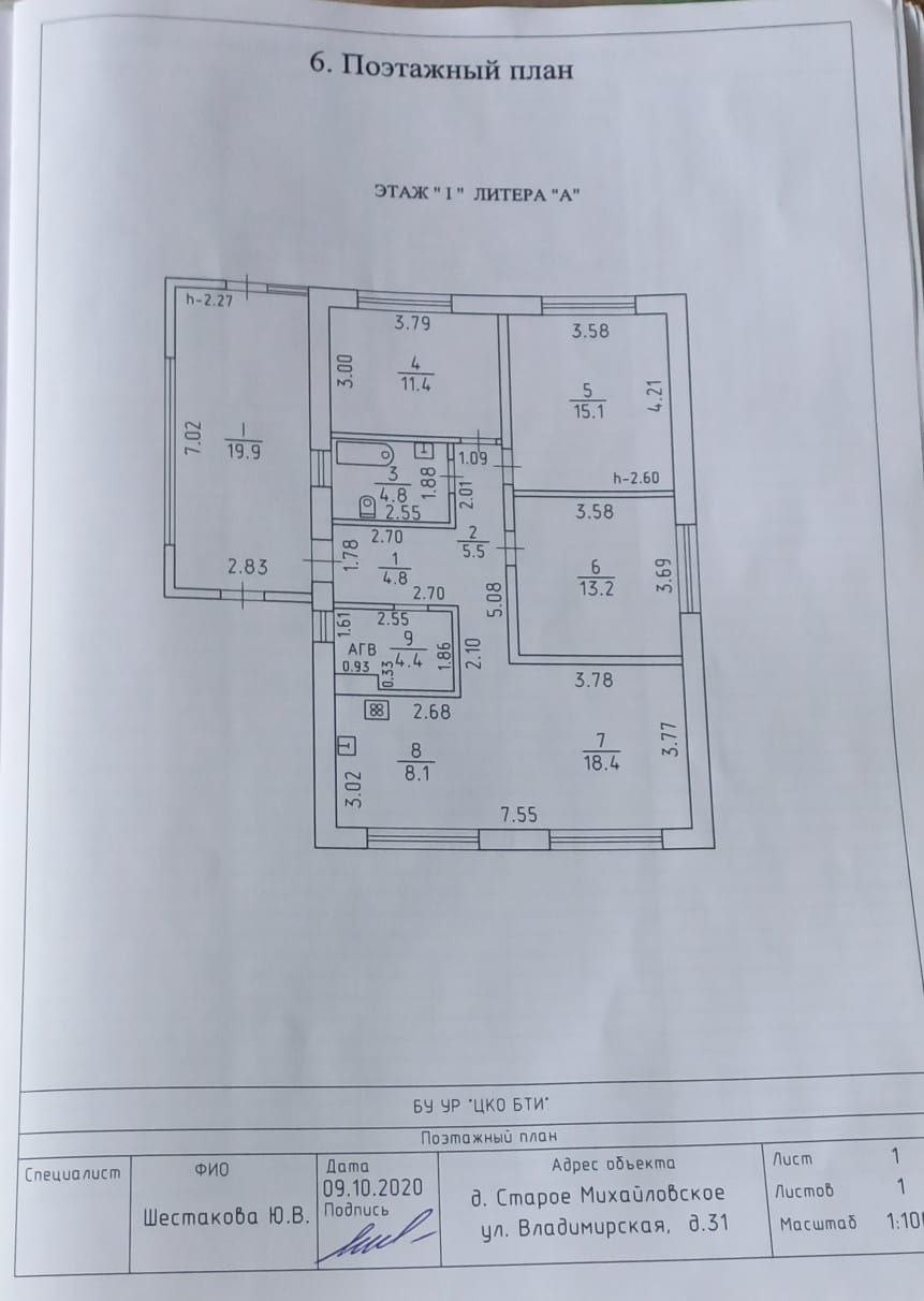 1-этажный дом, 108 м2, на продажу в деревне Старое Михайловское, Широкая улица, 10