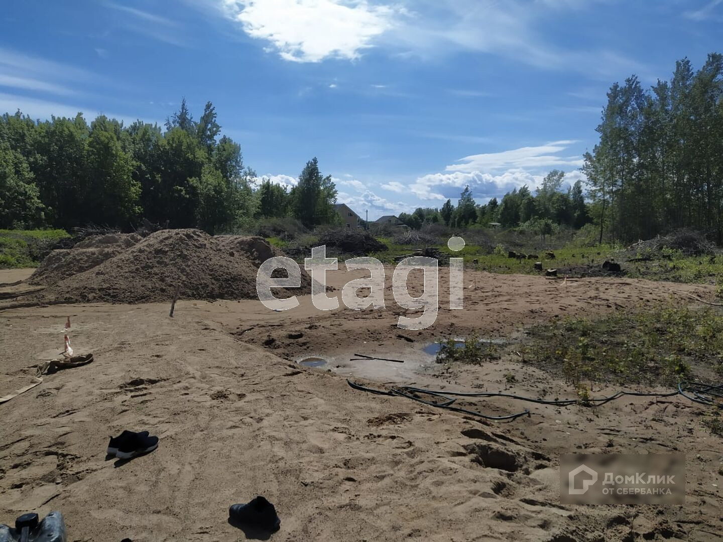 На участке сделаны подготовительные строительные работы- залита плита и сделана опалубка под дом, площадью 250 м2.
