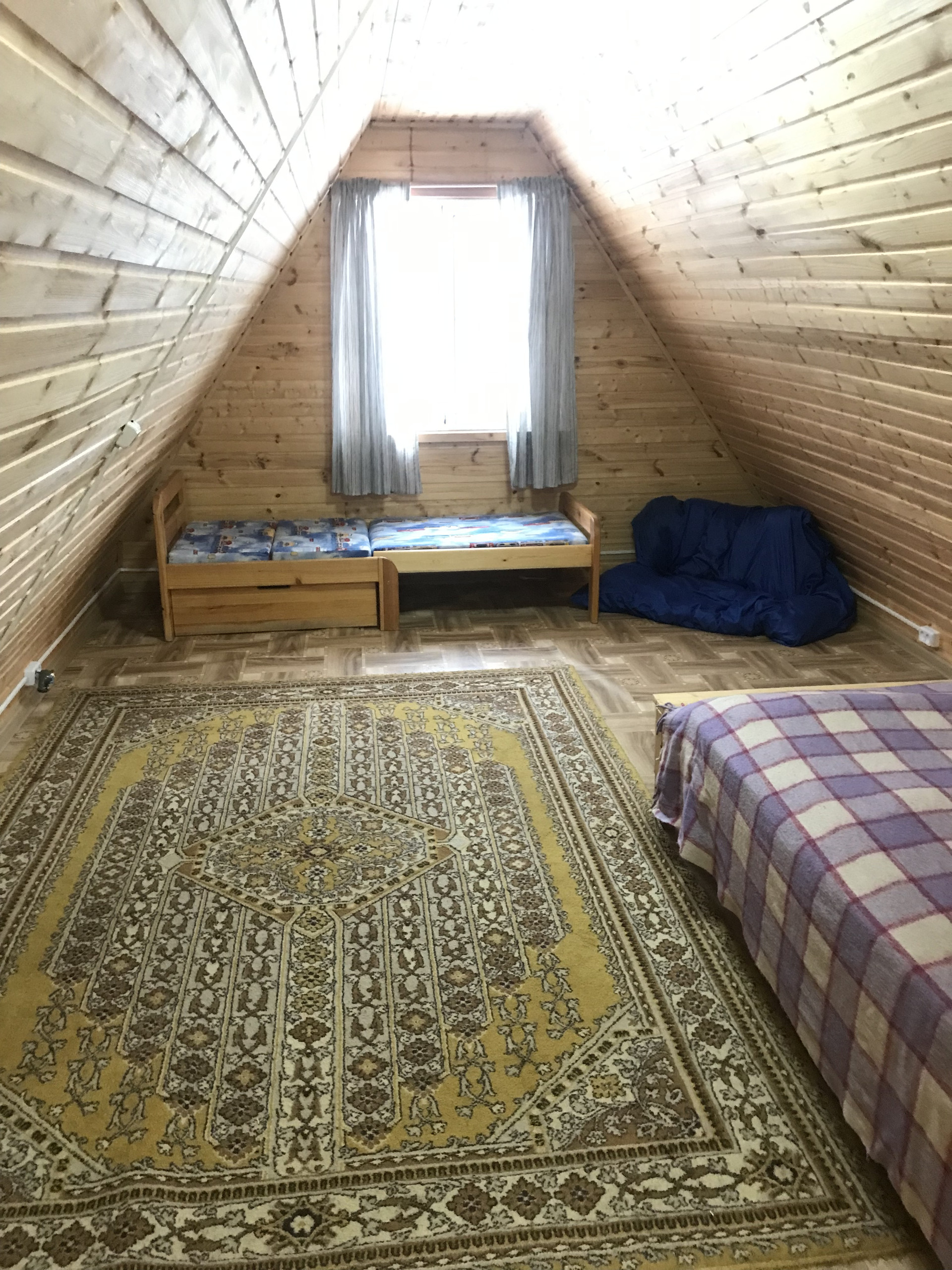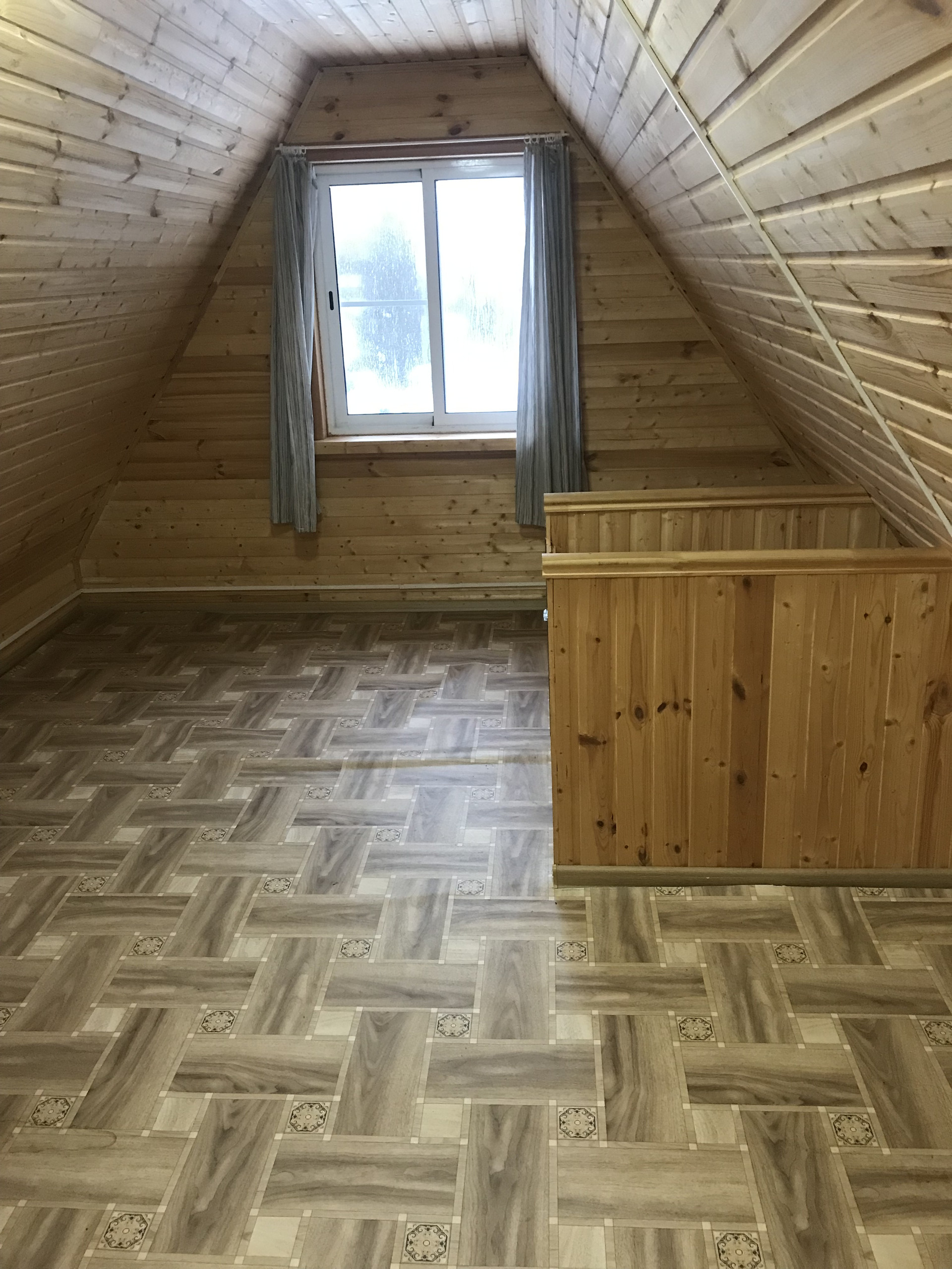 На втором этаже комната 24 кв.м и застекленный балкон.