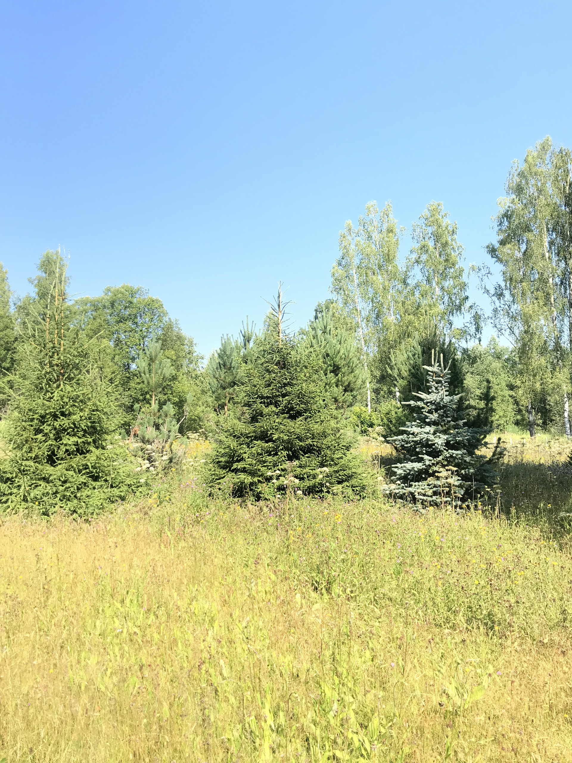 Участок ровный, засажен плодовыми деревьями и кустарниками, хвойниками и лиственными.