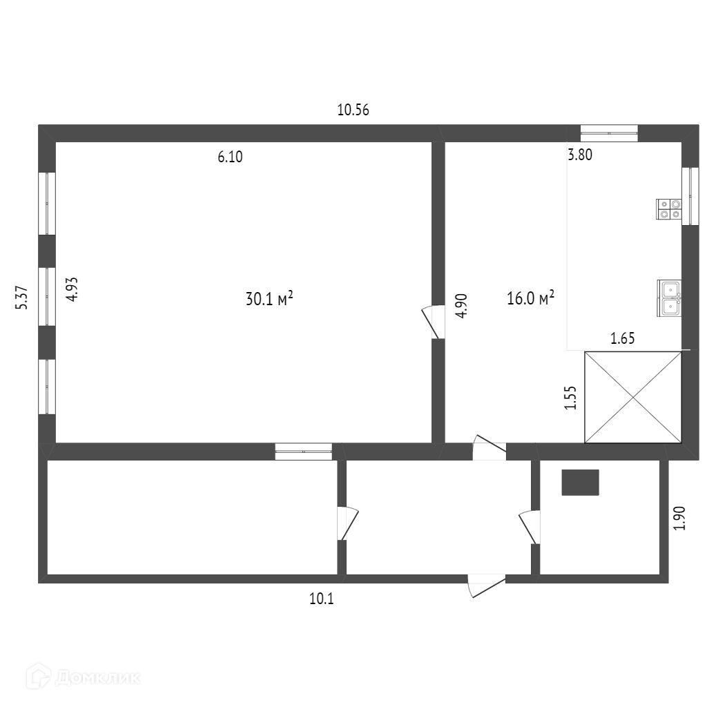 Общая площадь 46.1 м2