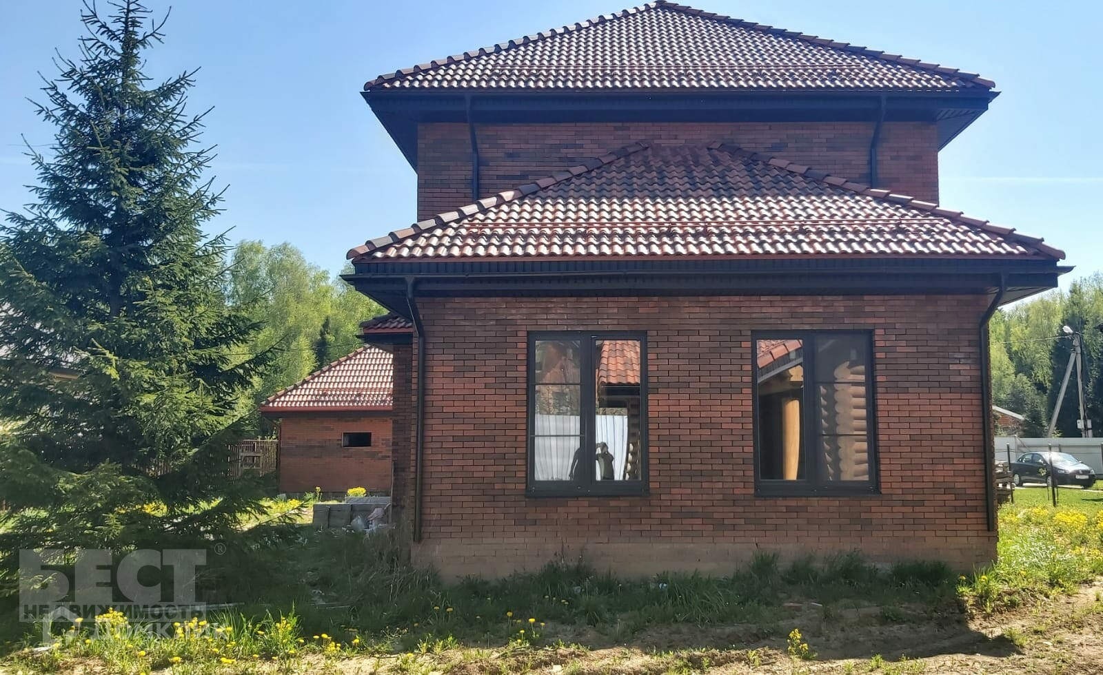 2-х этажный дом площадью 147 кв.м на монолитном фундаменте. Стены керамический кирпич, фасад облицован отделочным кирпичом (баварская кладка), монолитное перекрытие между этажами, лестница между 1 и 2 этажом, кровля - черепица, стеклопакеты (хамелеон).