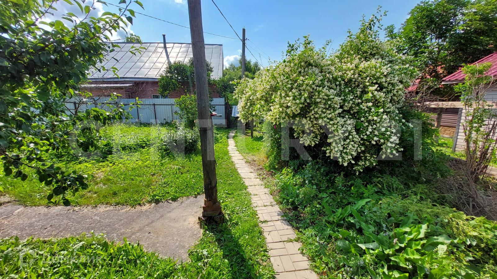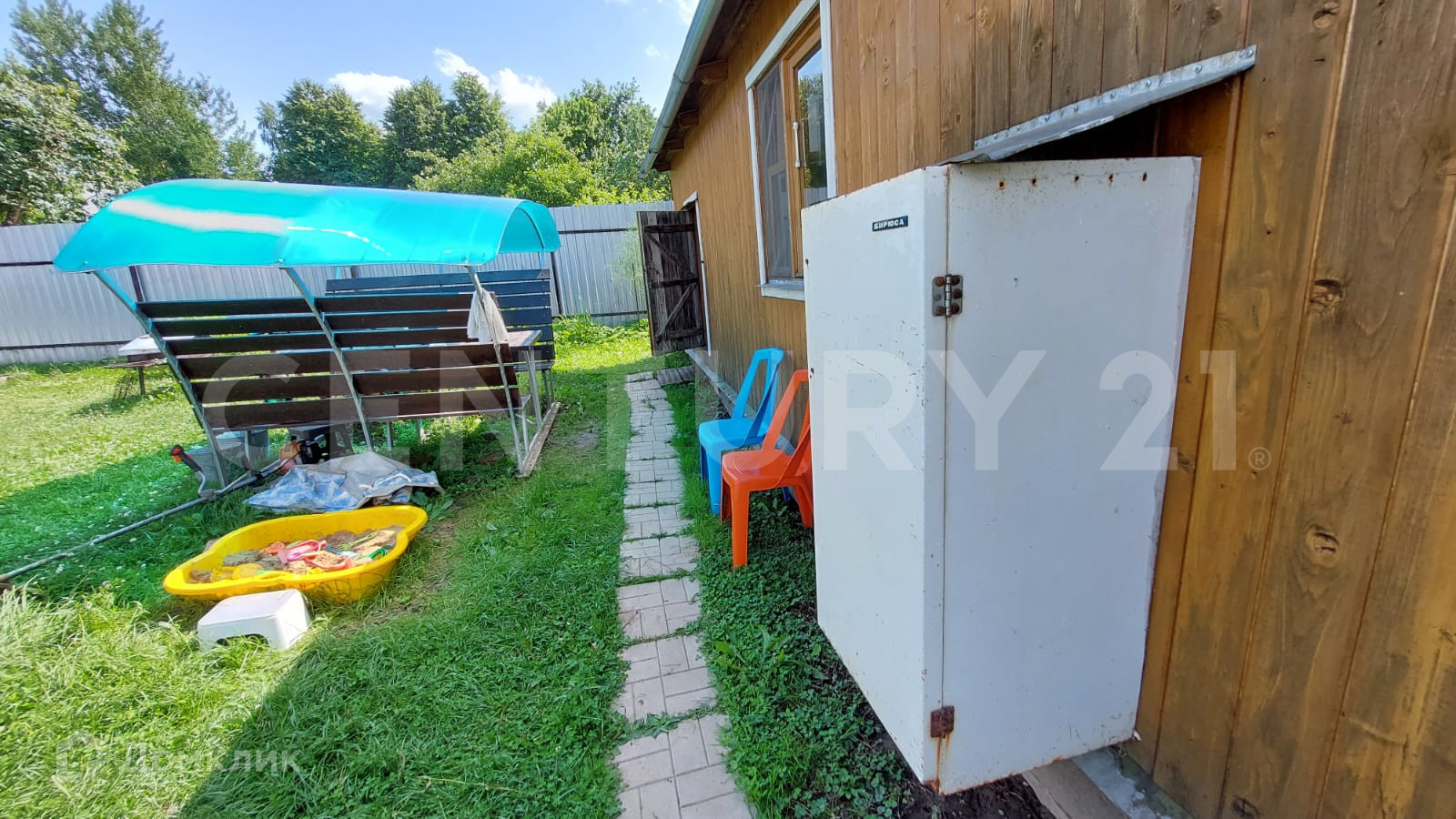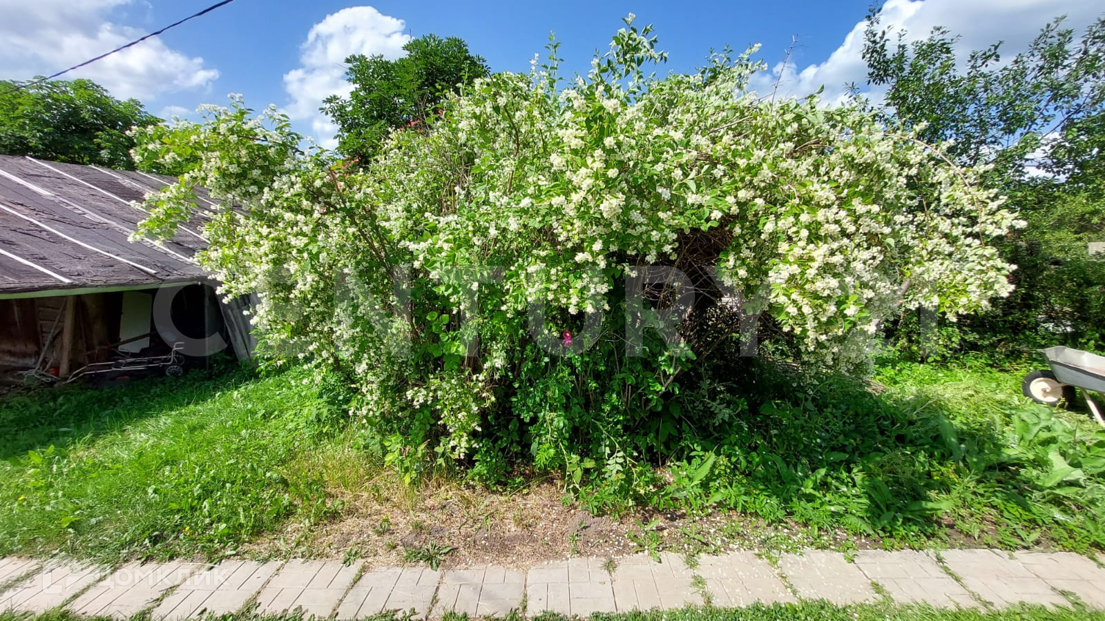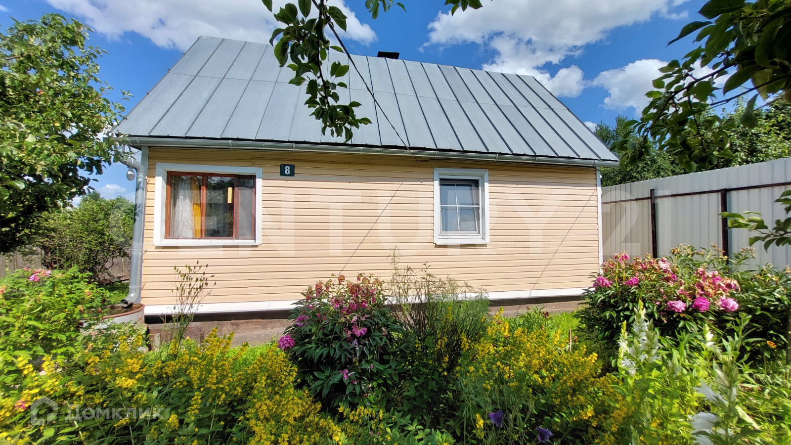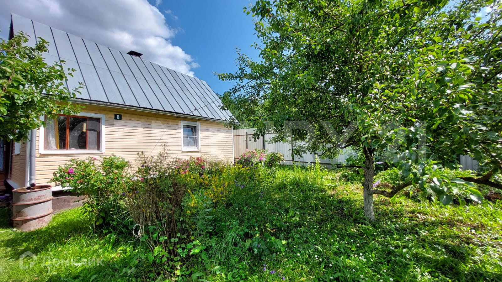 Земельный участок 15 соток имеет продолговатую форму, на нём расположен дом площадью 61,8 м2, новая теплица из поликарбоната, колодец, летний душ, туалет.