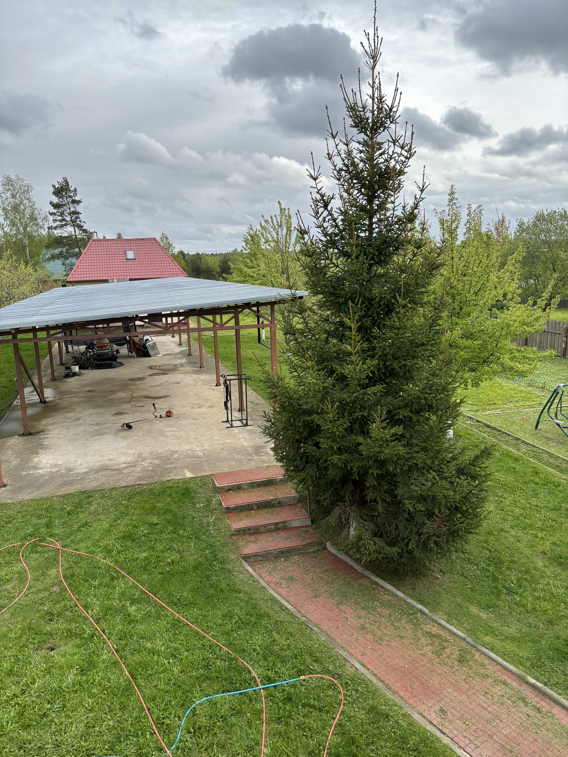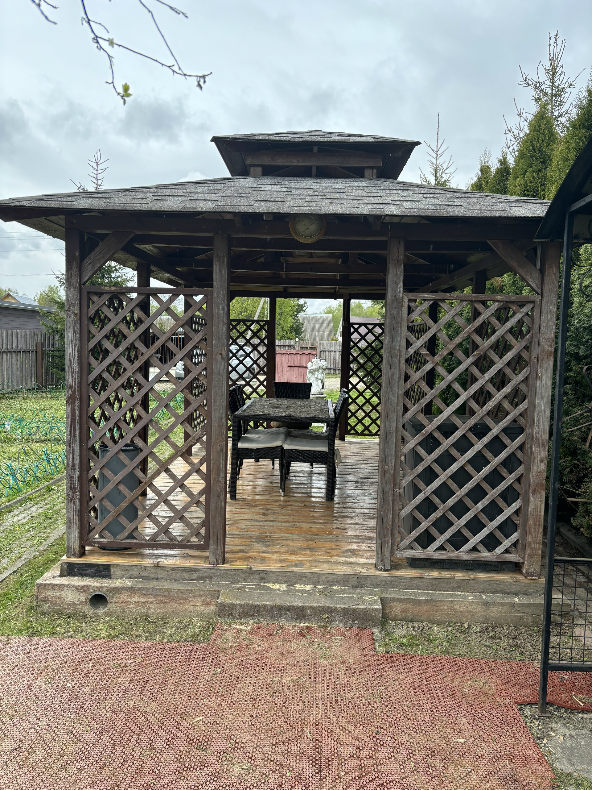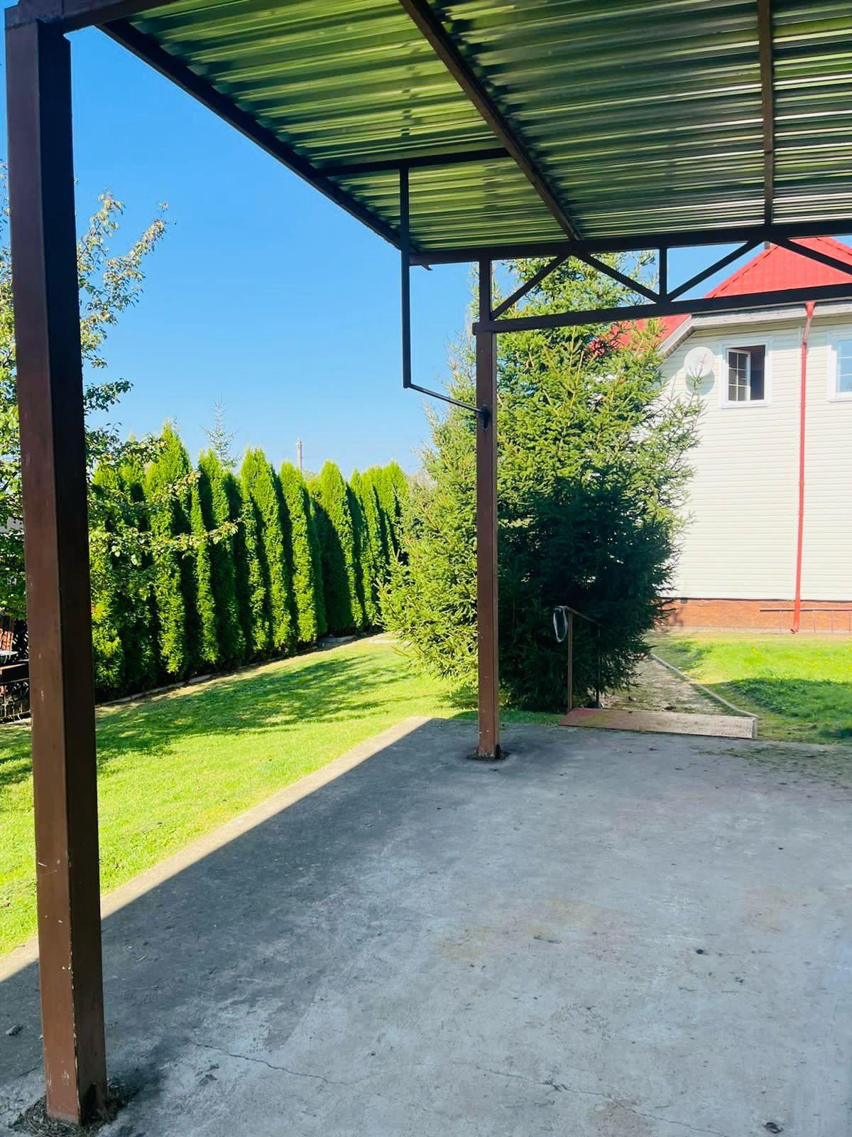 Участок зонирован: огород, сад, отдых, детская площадка. Туи, яблони, вишни, цветы.