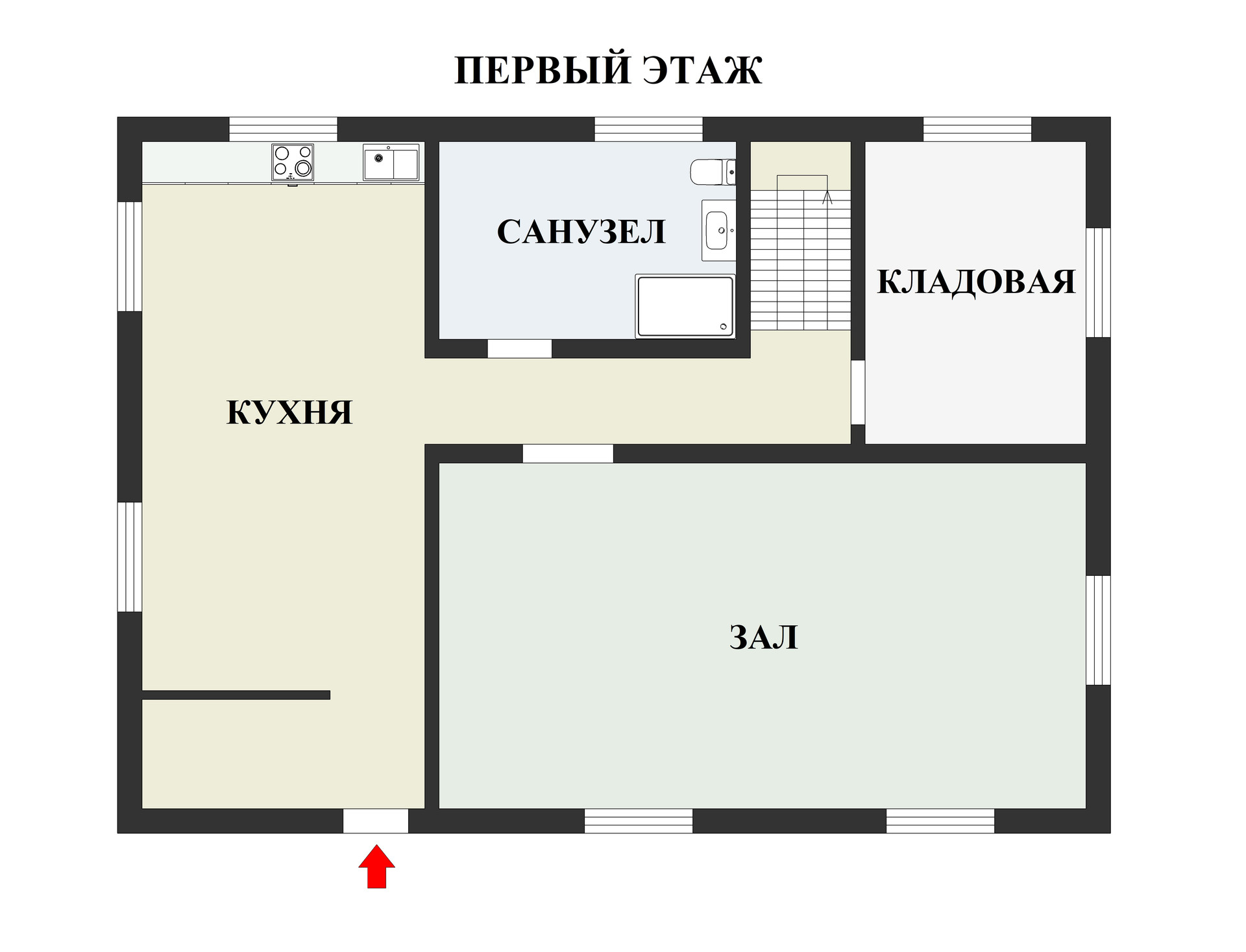 Гараж, на втором этаже студия для обслуживающего персонала: комната, кухня, санузел.