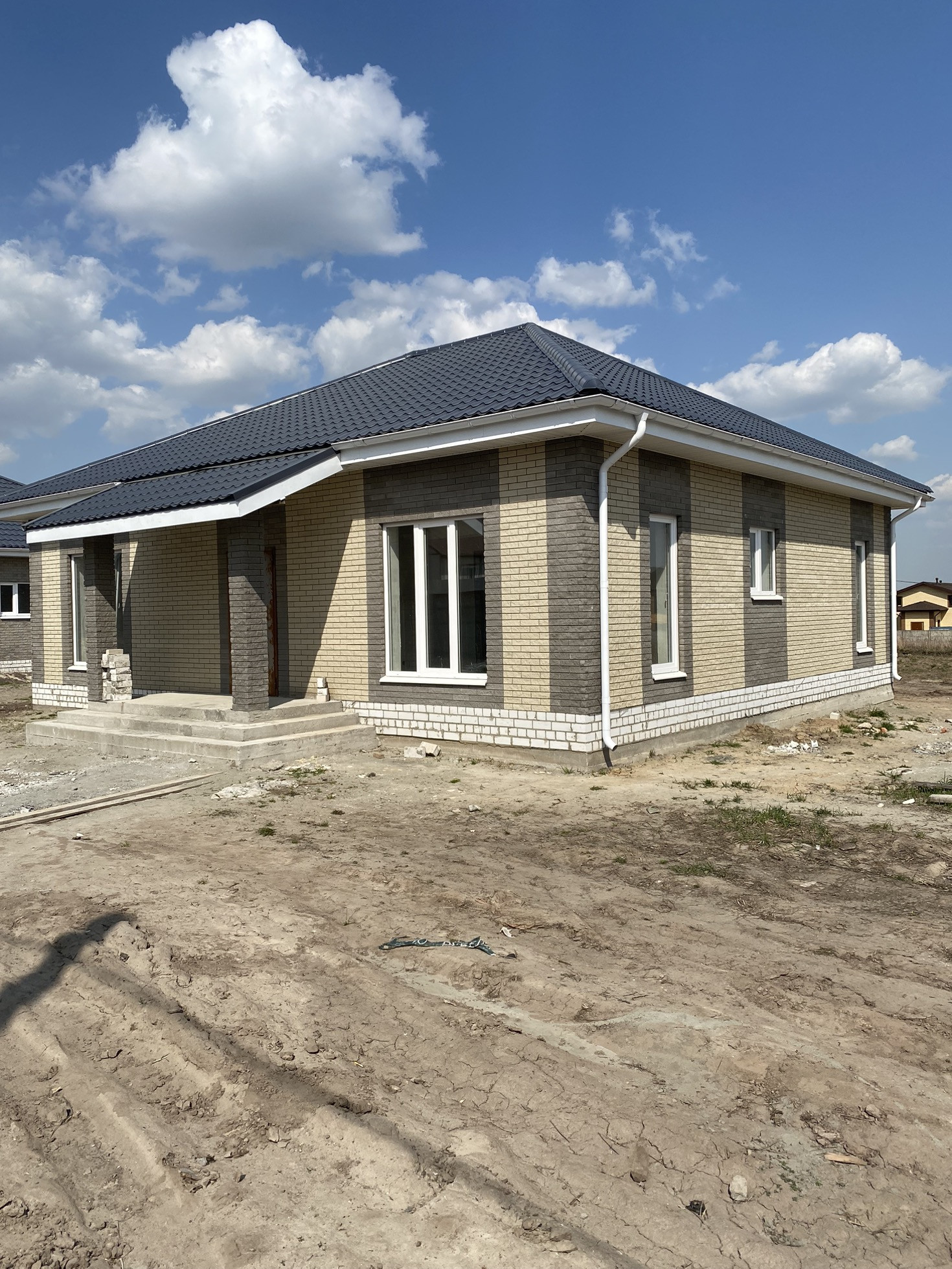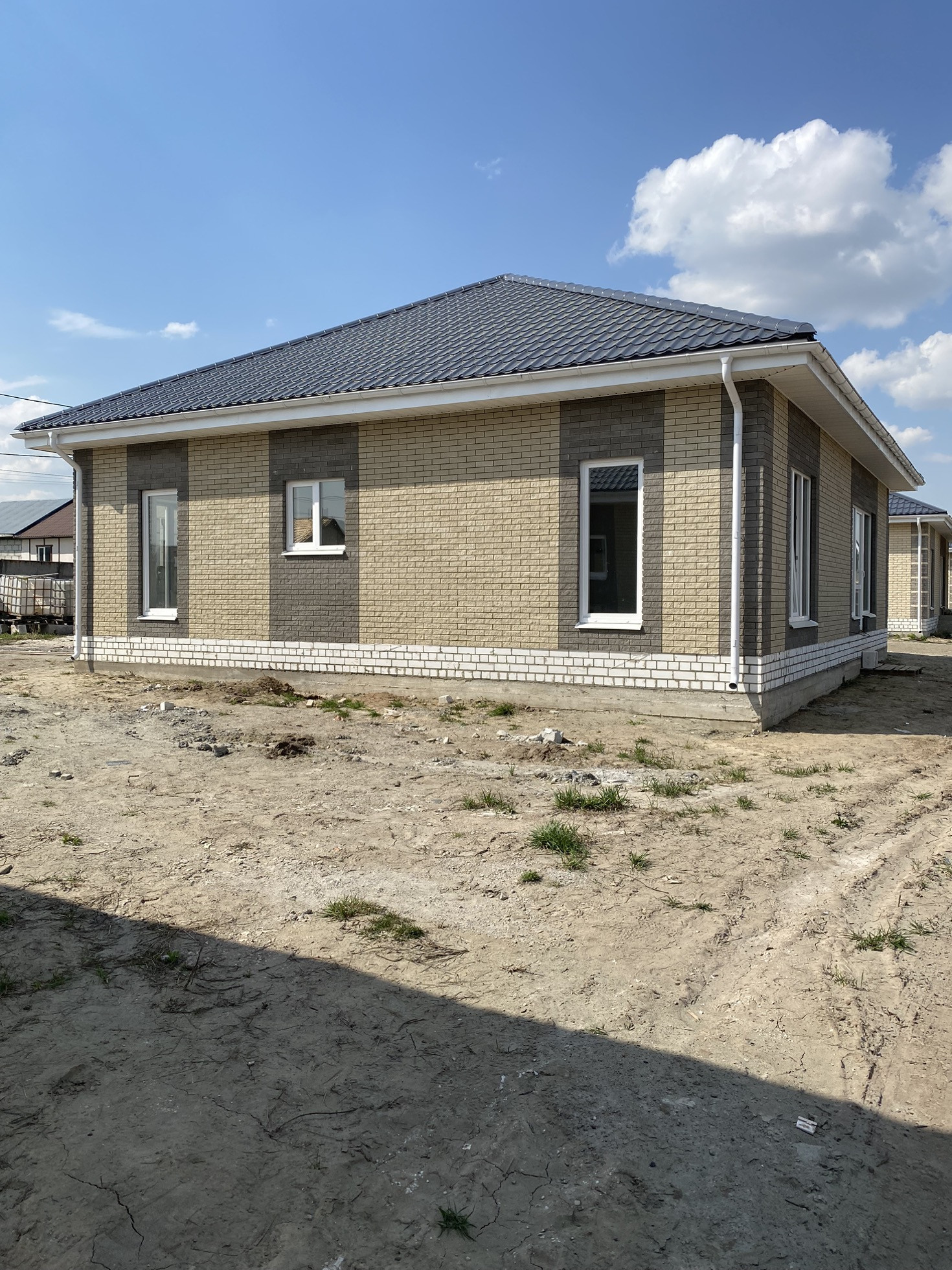 ✅ стены выполнены из газосиликатных блоков, обложены облицовочным кирпичом высокого качества;