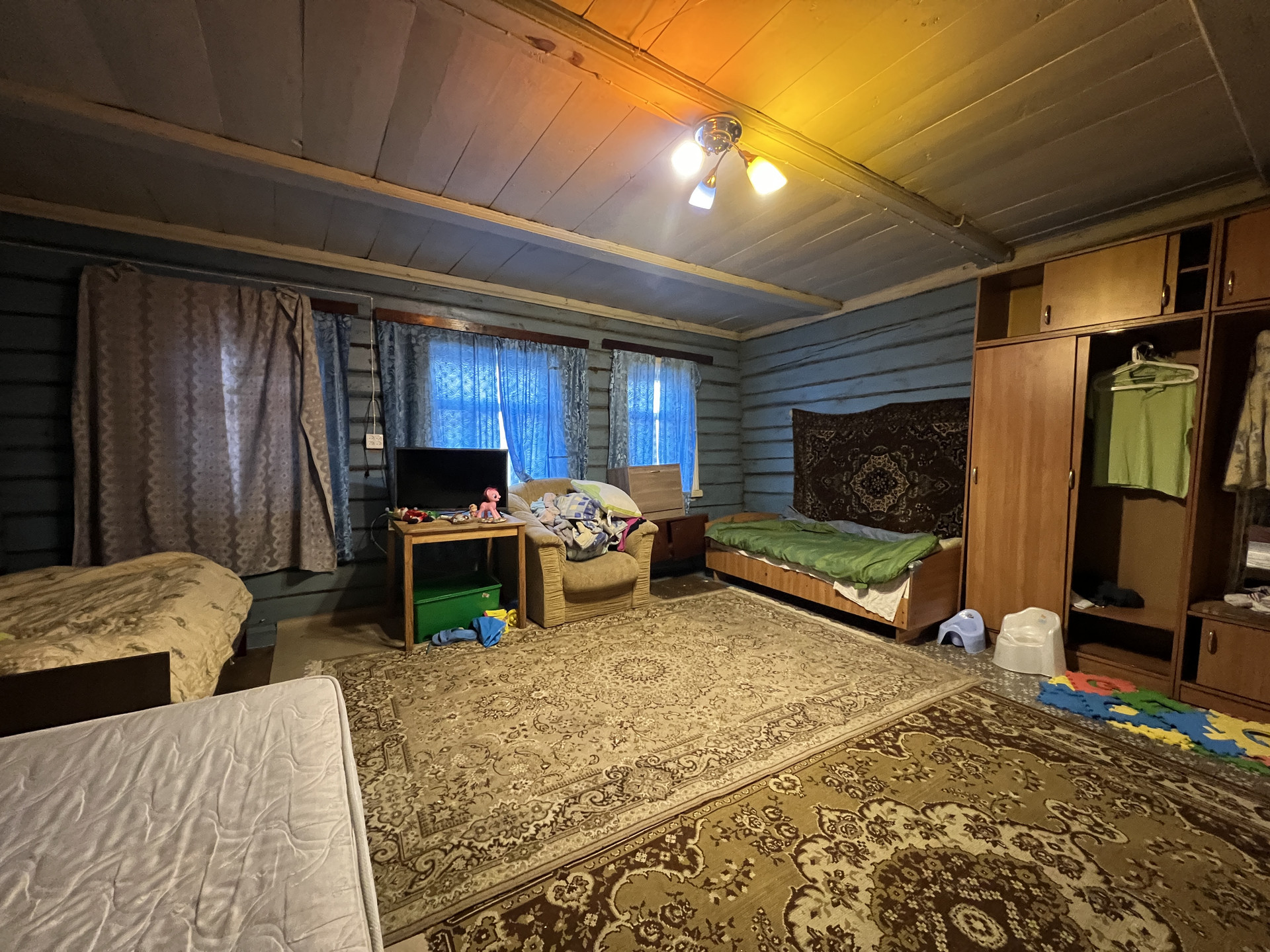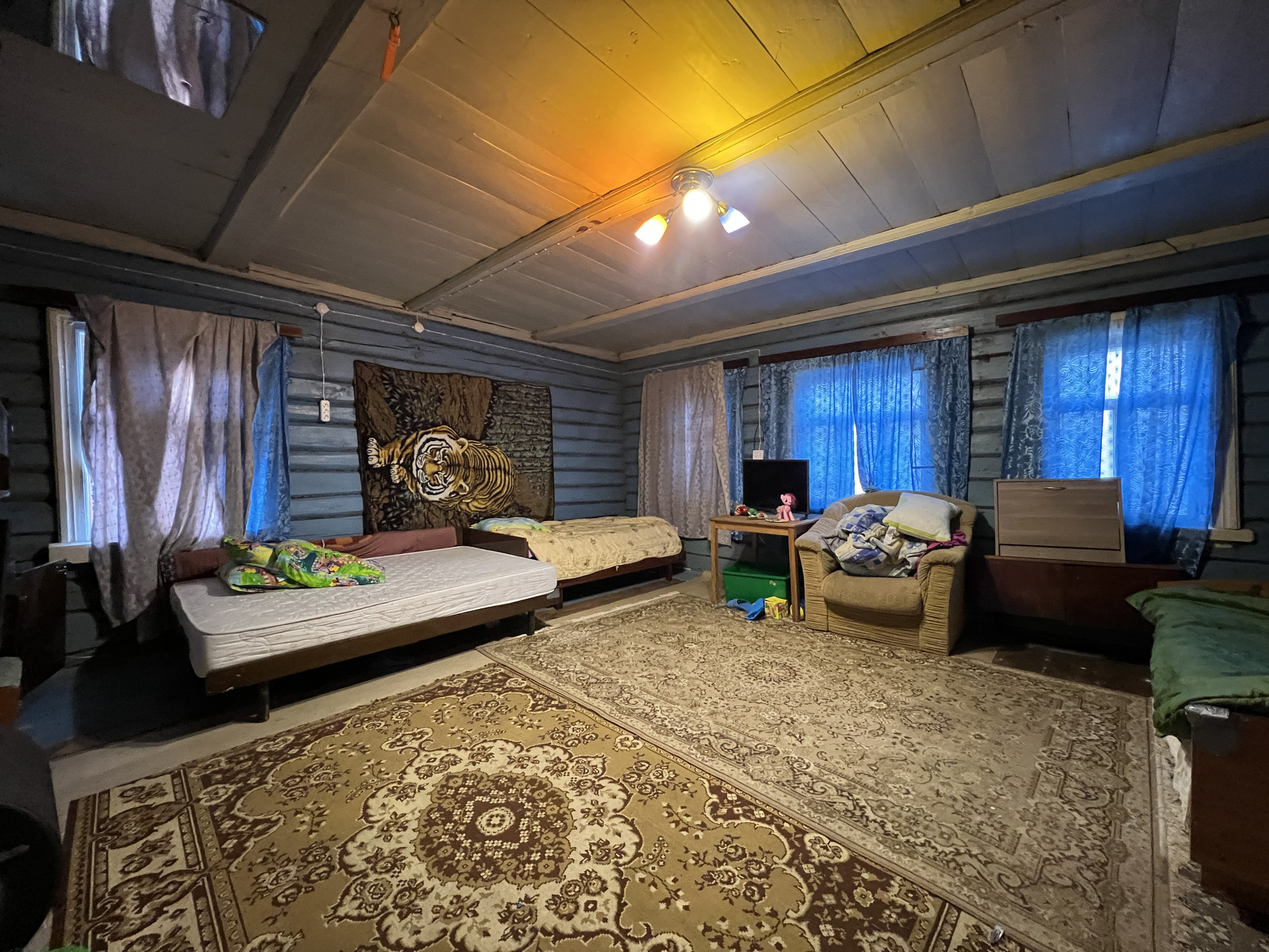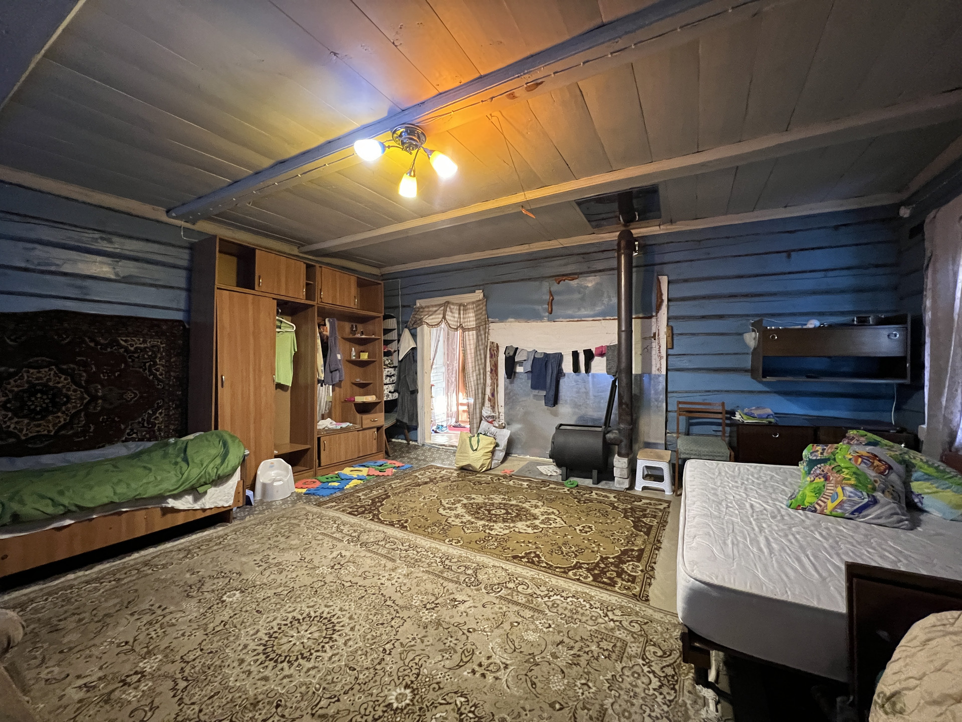 На участке есть еще одно жилое строение – бревенчатый дом площадью 55 кв. м с печным отоплением. Еще на участке баня, хоз. блок, летний душ и уличный туалет.