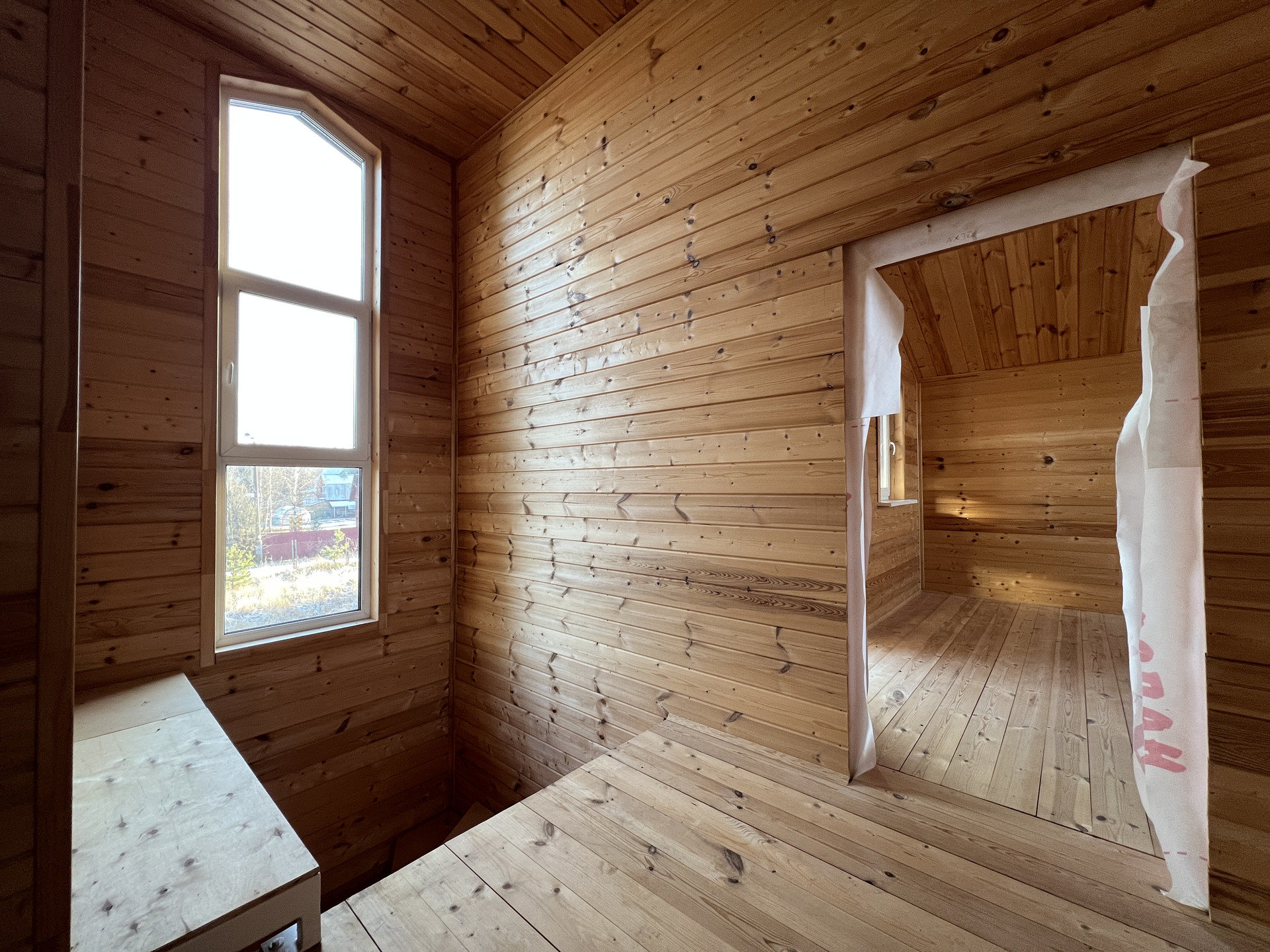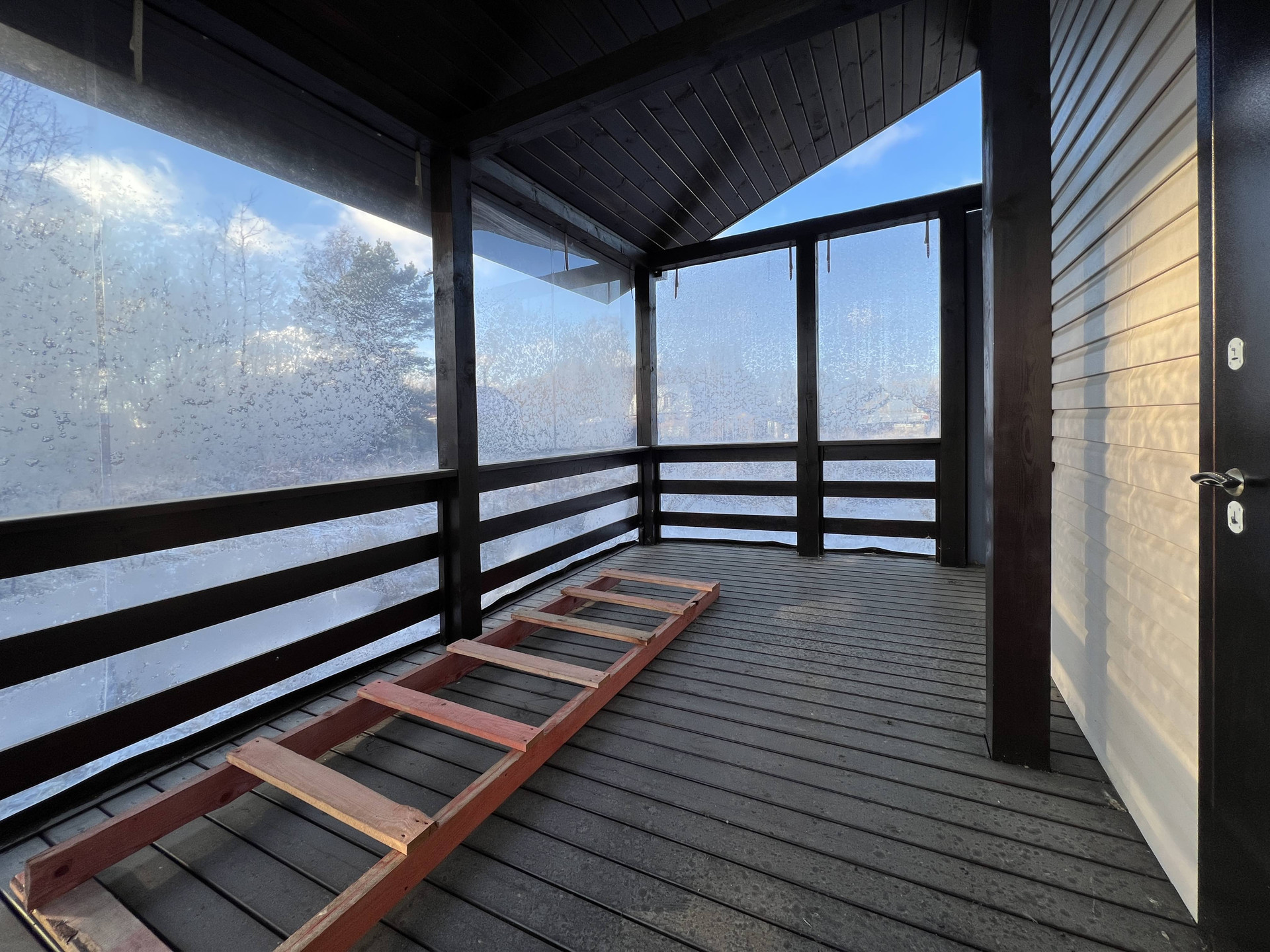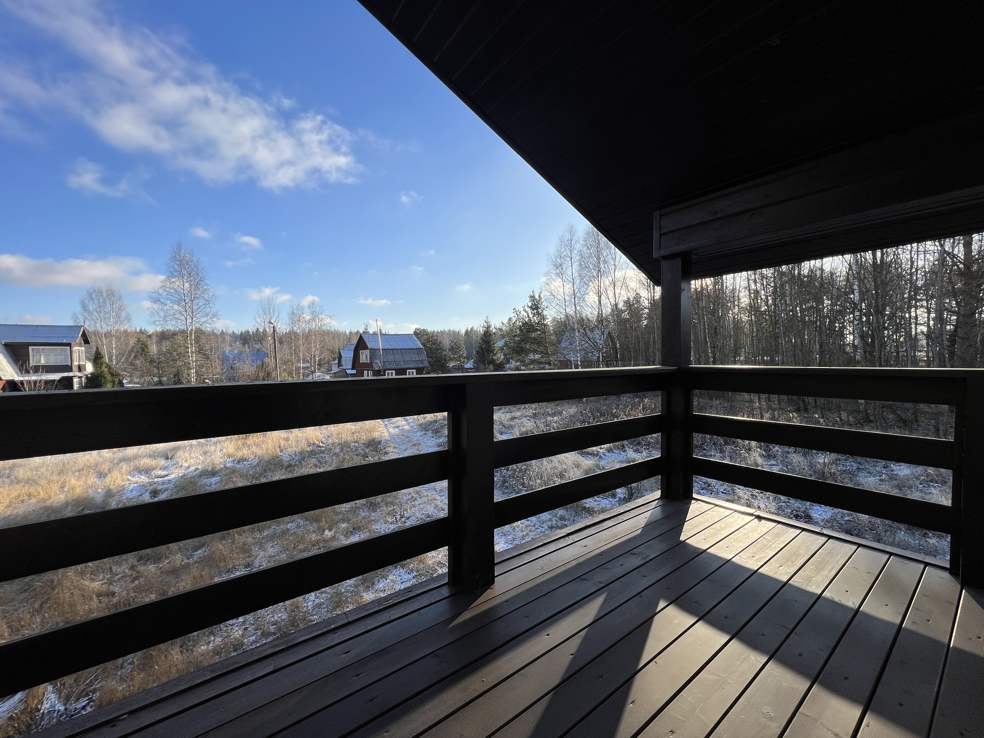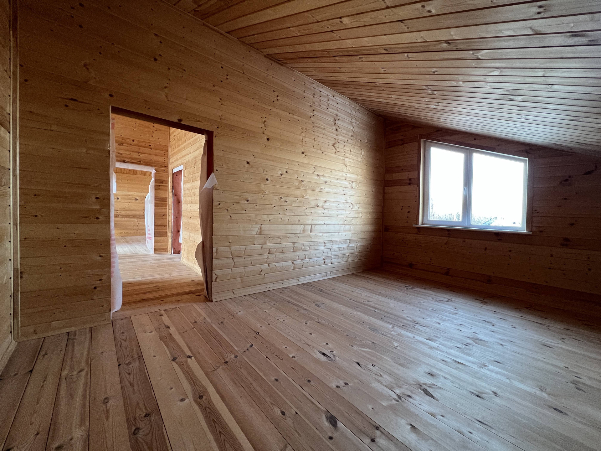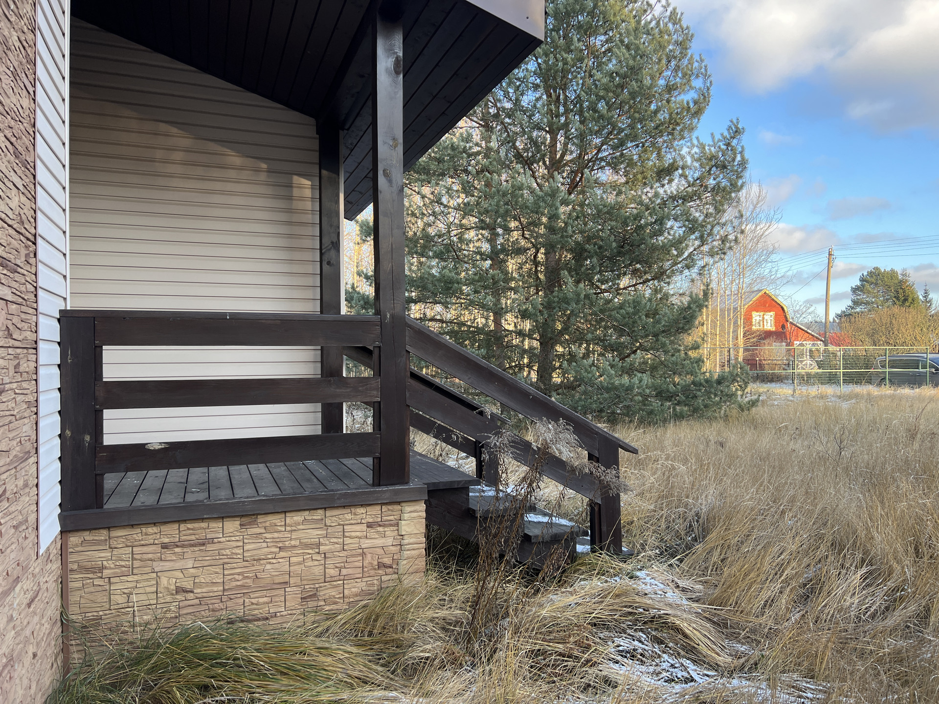 Новый каркасный дом с усиленными лагами и каркасом 200 мм стоит на свайно-винтовом фундаменте. Фасад облицован долговечным красивым сайдингом. Кровля металлочерепица со снегозадержателями. Внутри дома имитация бруса и хорошая половая доска. В стенах базальтовый утеплитель. Двухкамерные стеклопакеты с ламинацией под дерево. Лестница на металлическом каркасе.