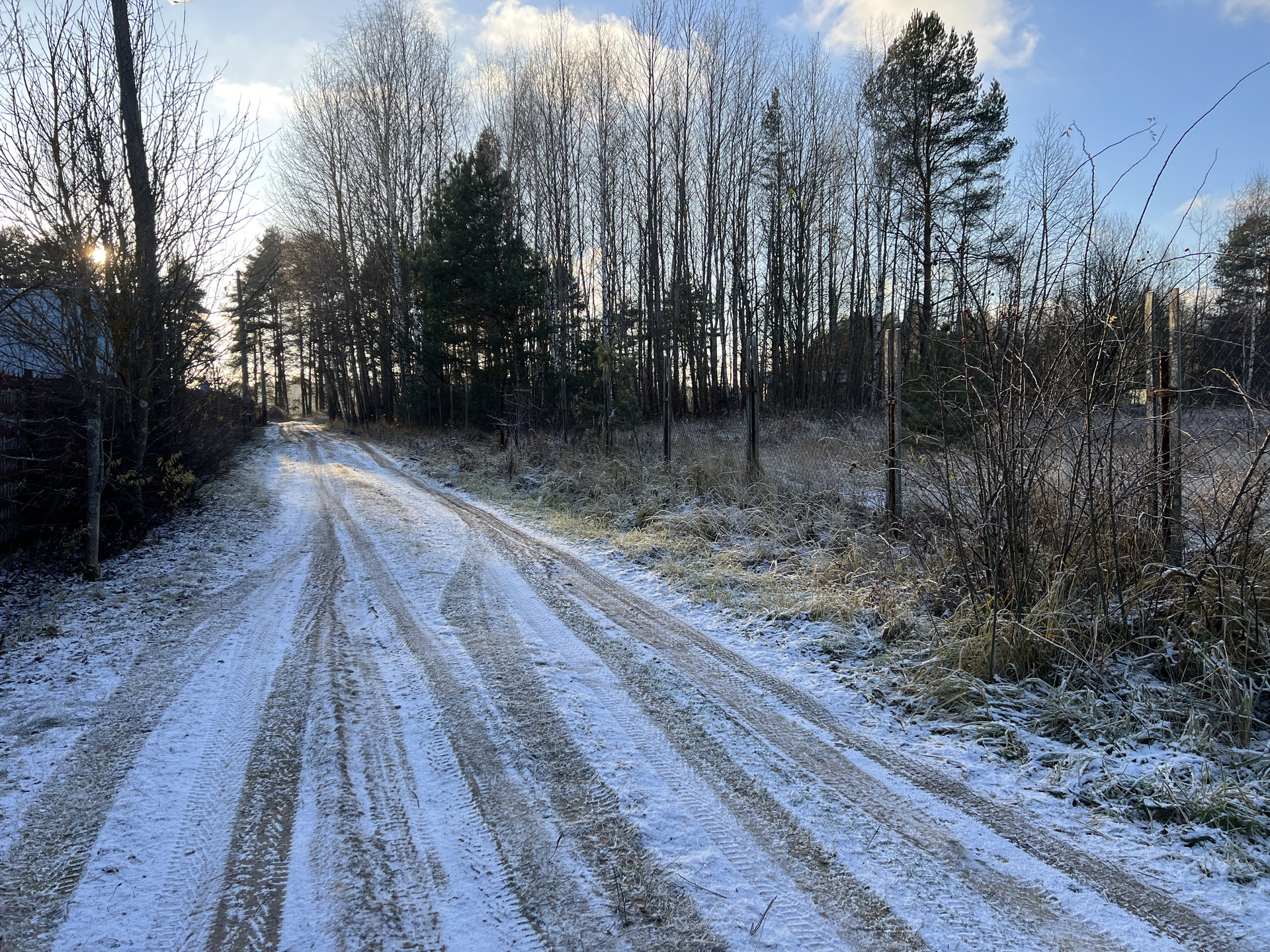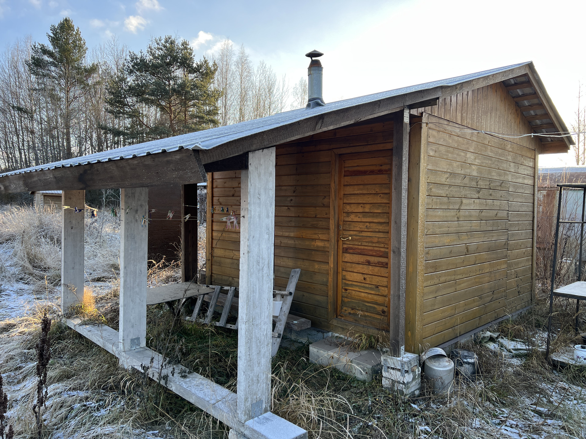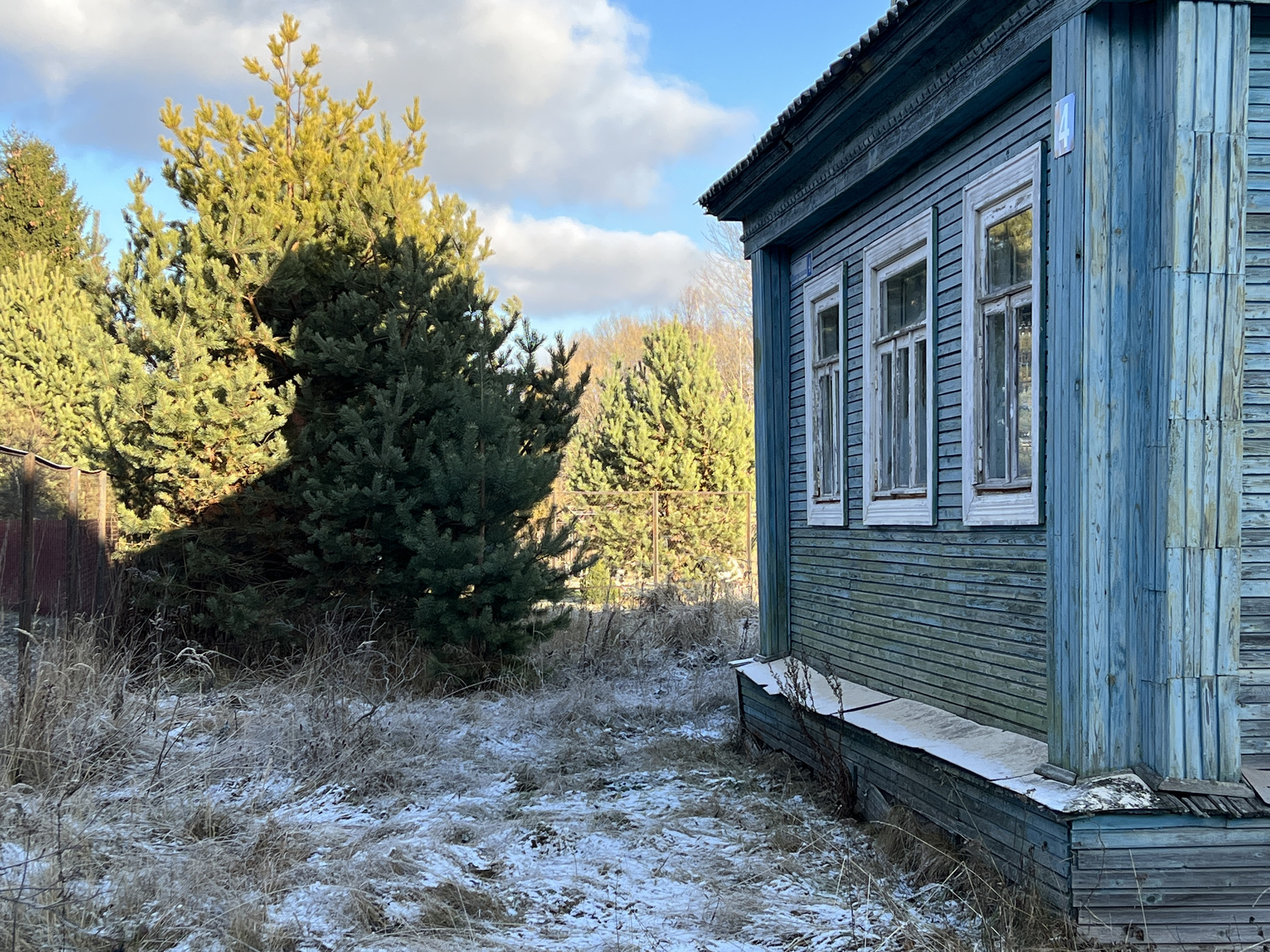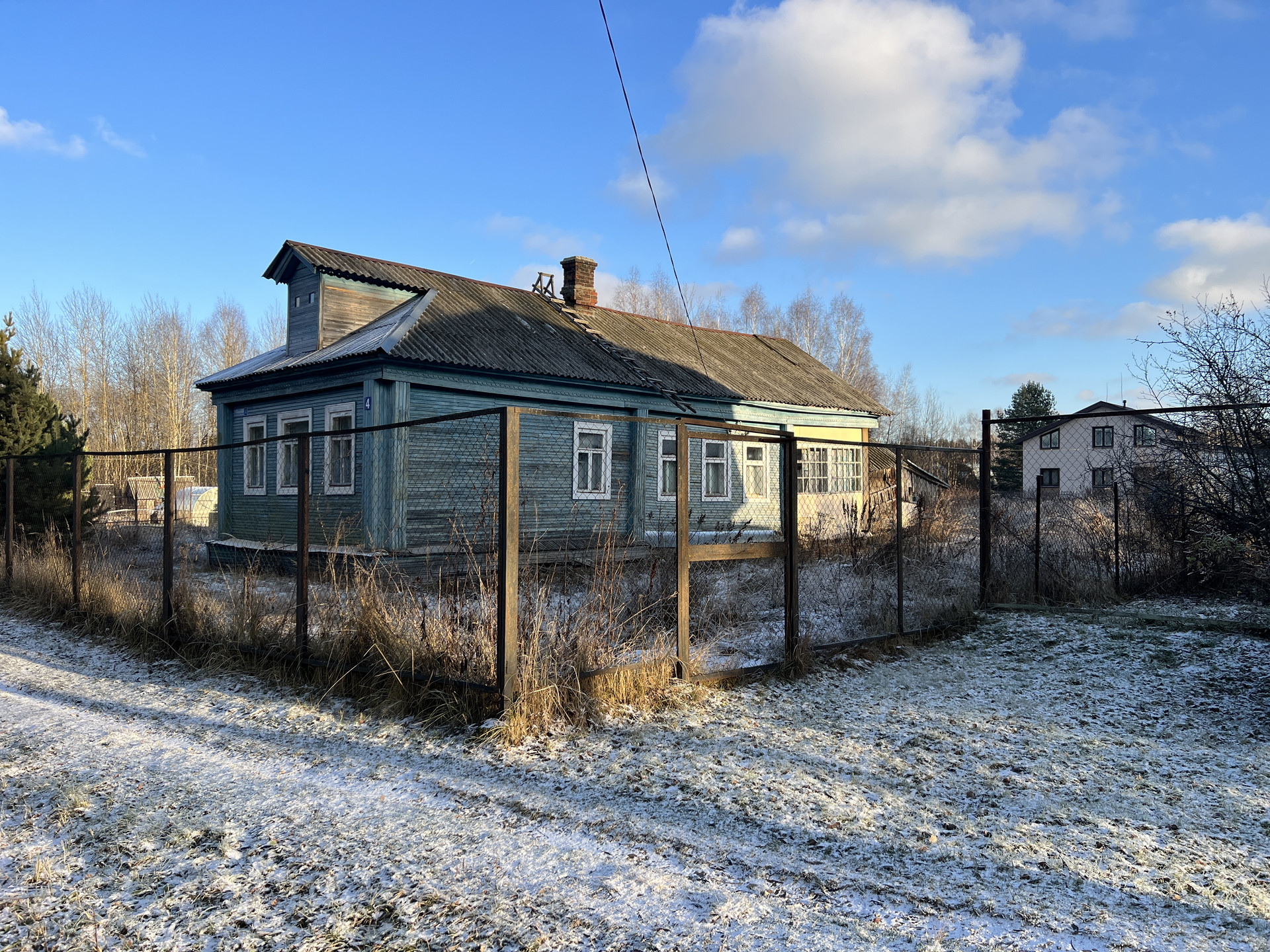 Участок 53 сотки правильной формы состоит из двух участков. Общие размеры участков 107 на 50 м. Участок расположен между двумя березовыми рощами. Перед домом красивая большая сосна.