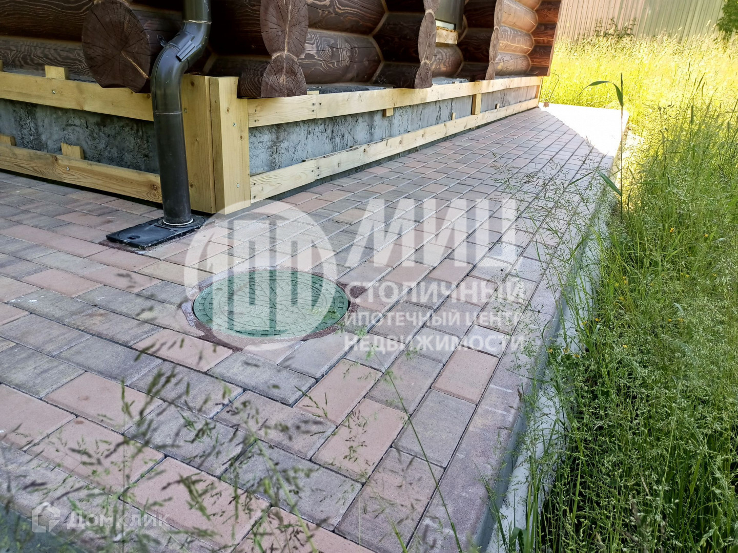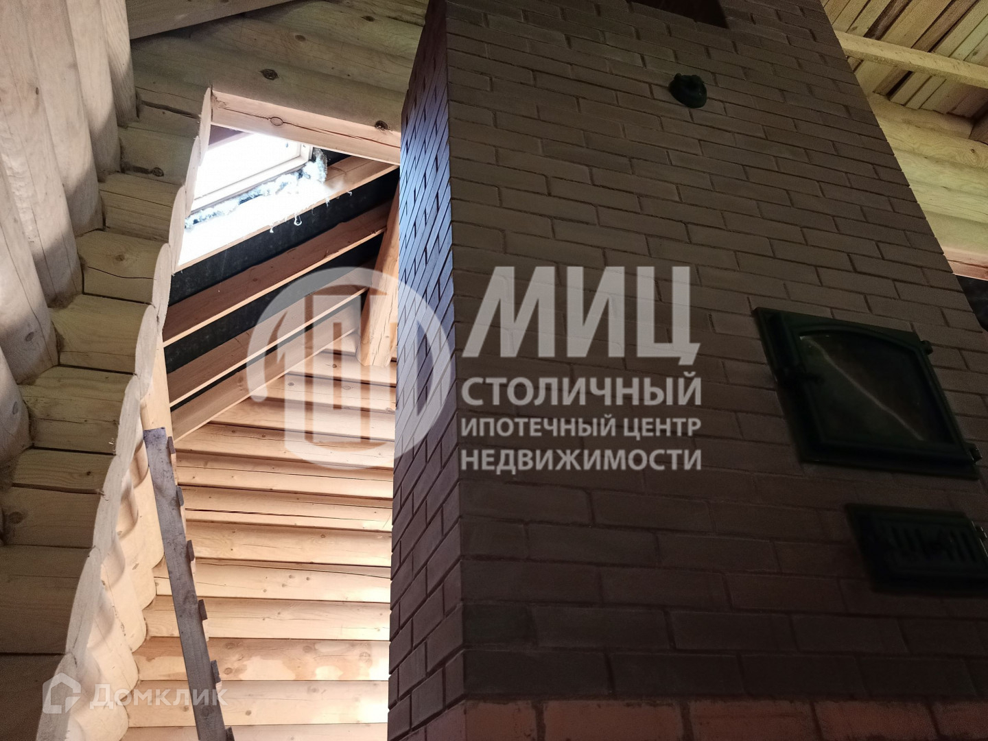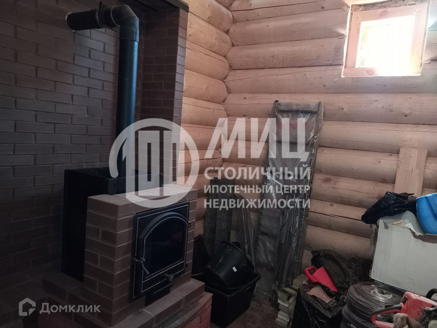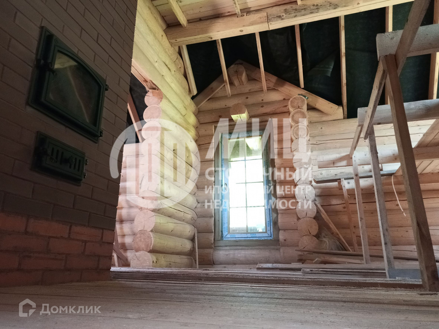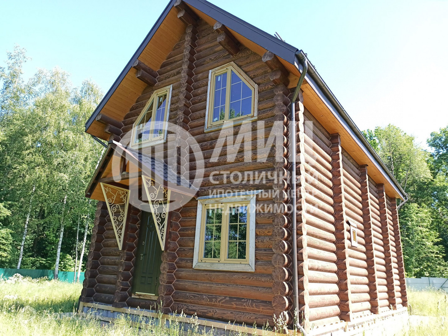 Построен из оцилиндрованного бревна 300 мм.
