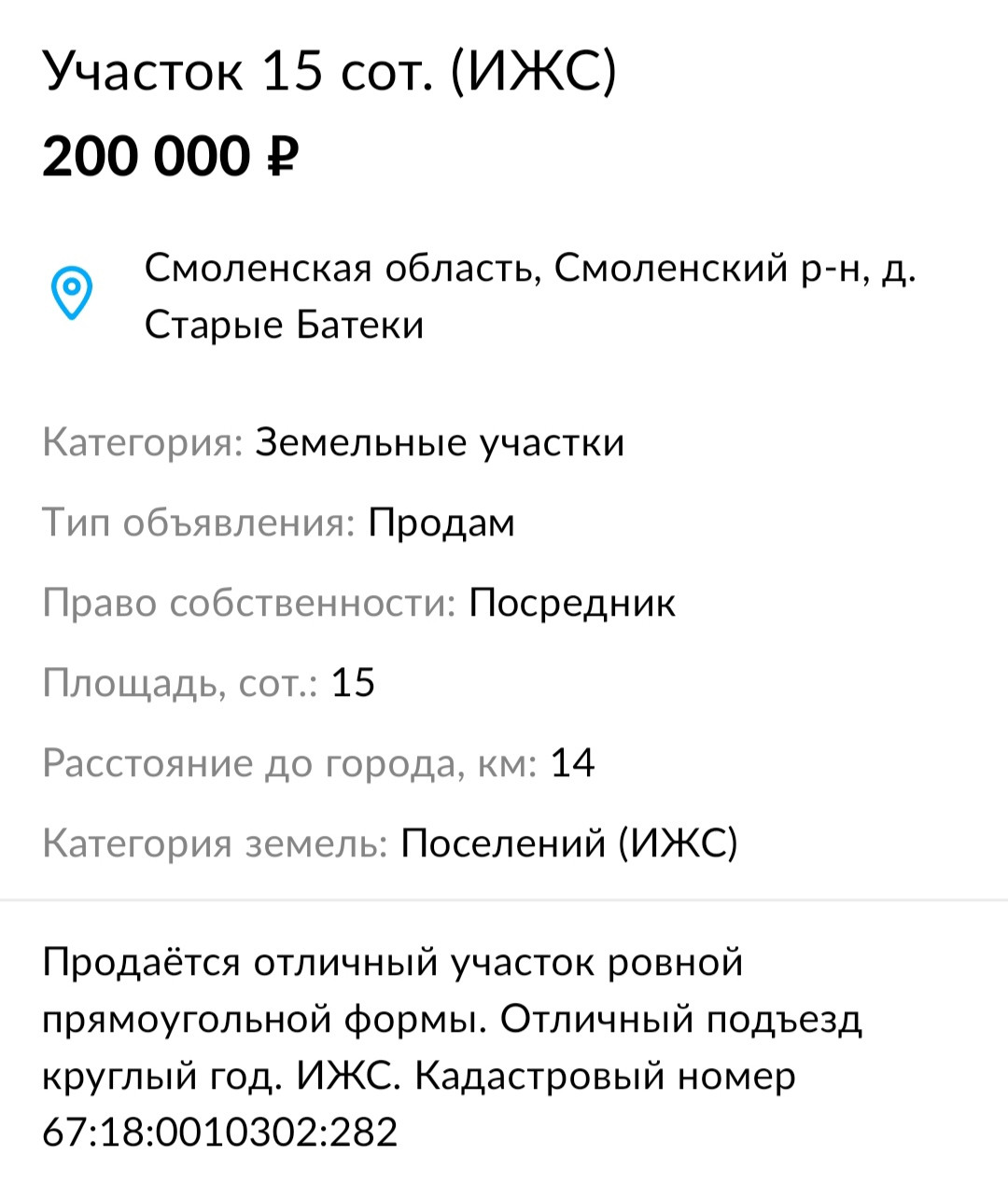 Участок под ИЖС, 15 сот. на продажу в деревне Старые Батеки, Дубовая улица