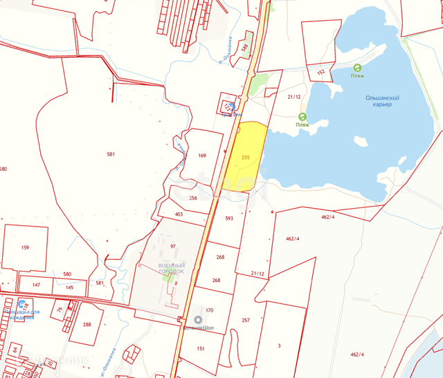 Участок расположен на берегу пруда Ольшанские Карьеры.