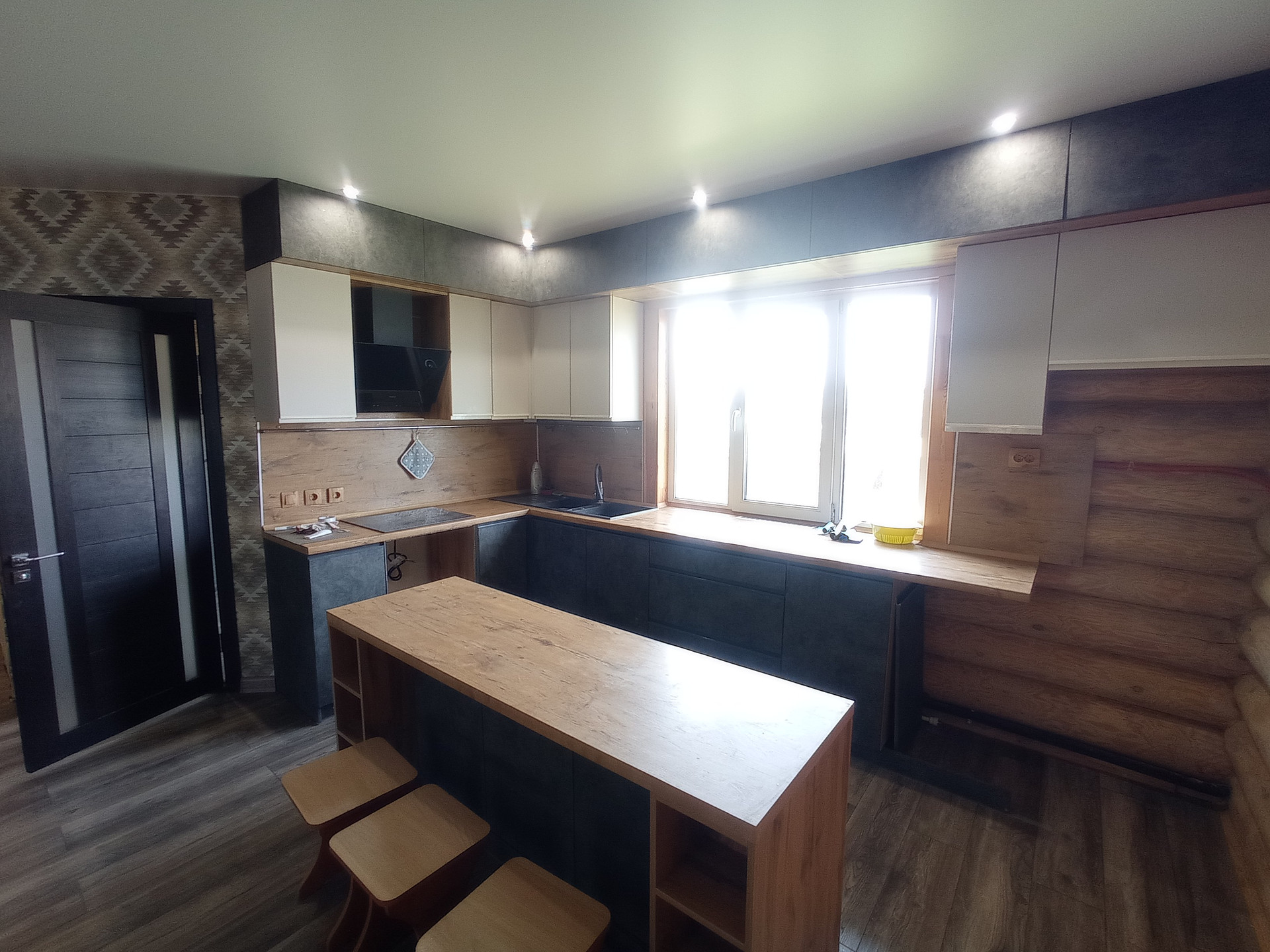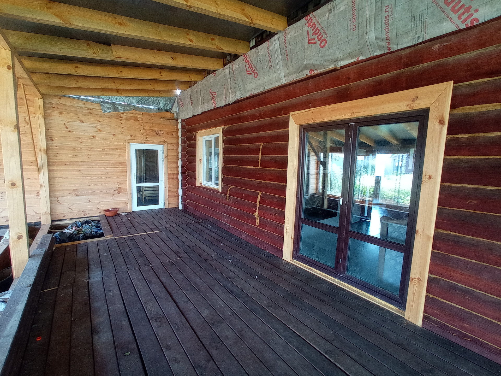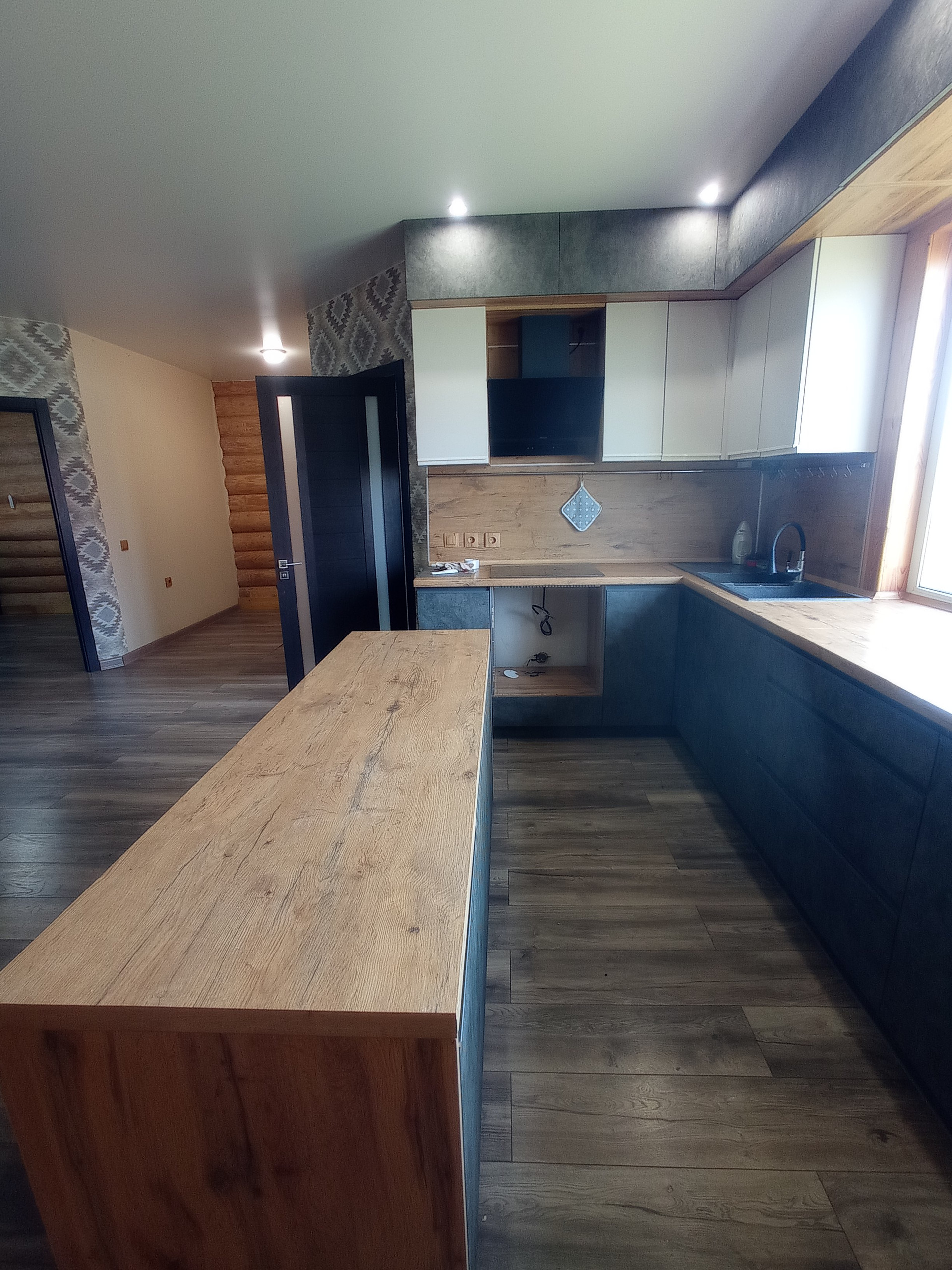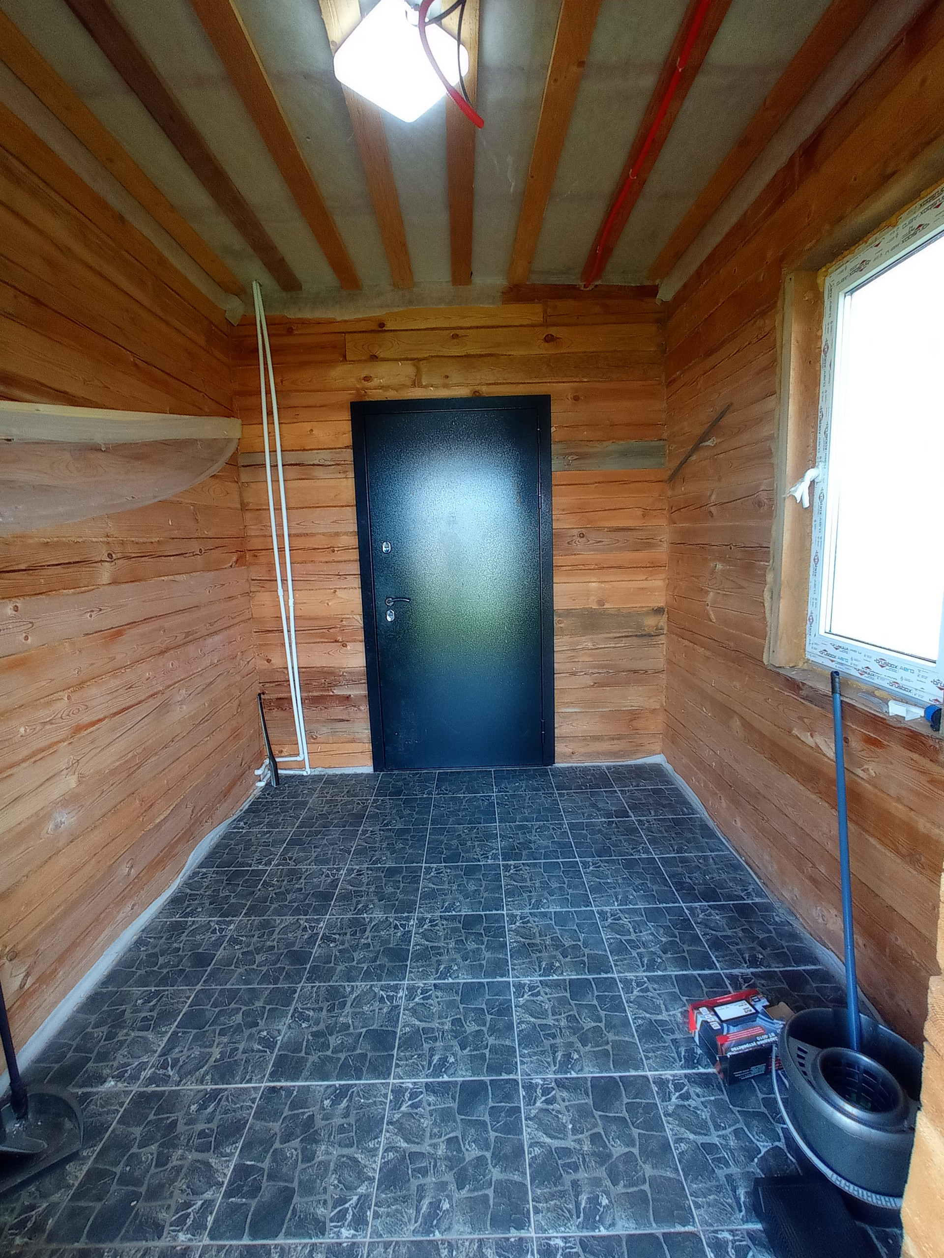 Дом построен из зимнего леса и не дает усадки. Отапливается дом с помощью жидкостного теплого пола, который нагревается тепловым насосом, а также в системе для подстраховки есть электрический котел.