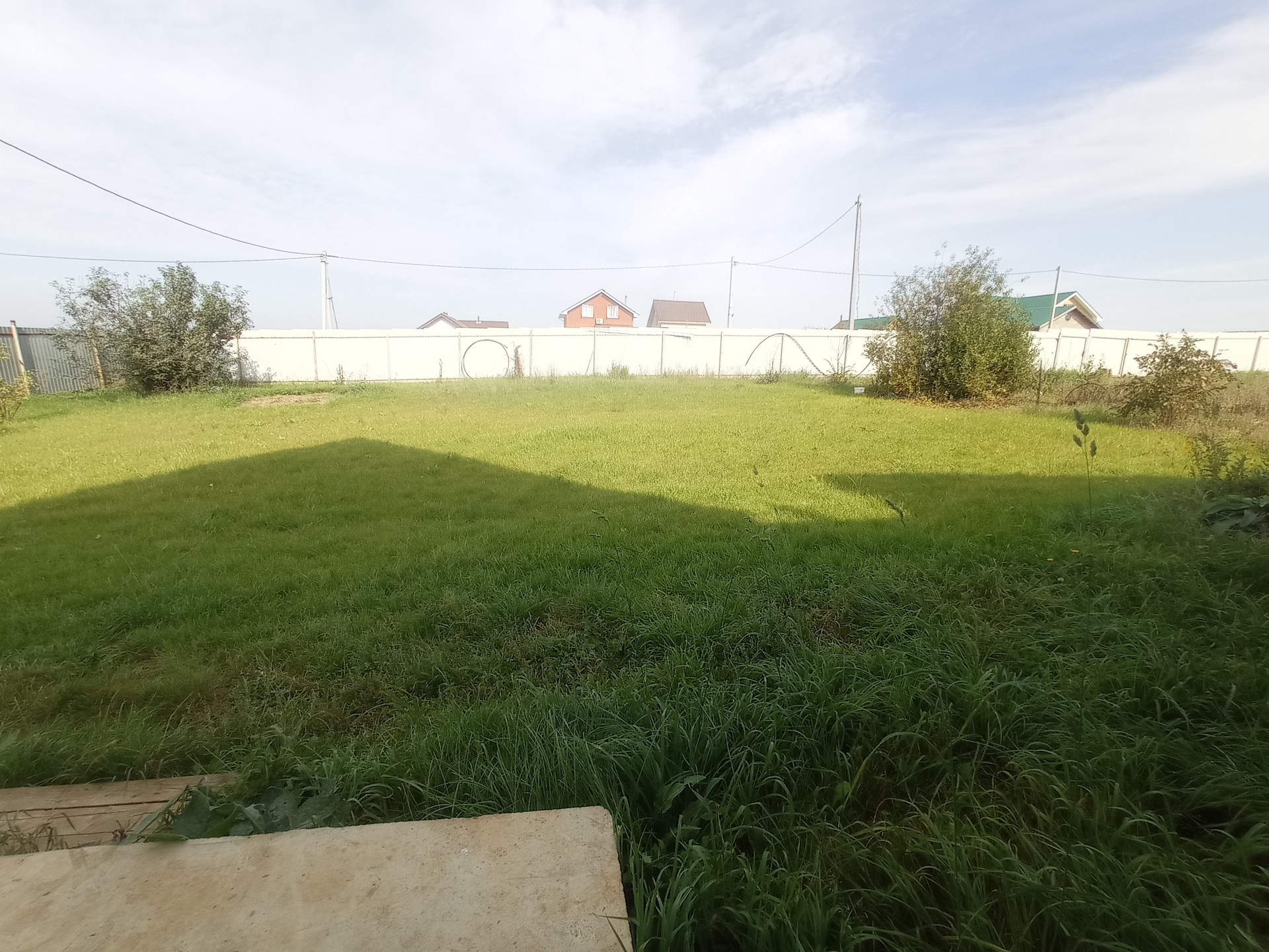 Ровный и сухой земельный участок размером 10 соток, большая часть засажена газоном.