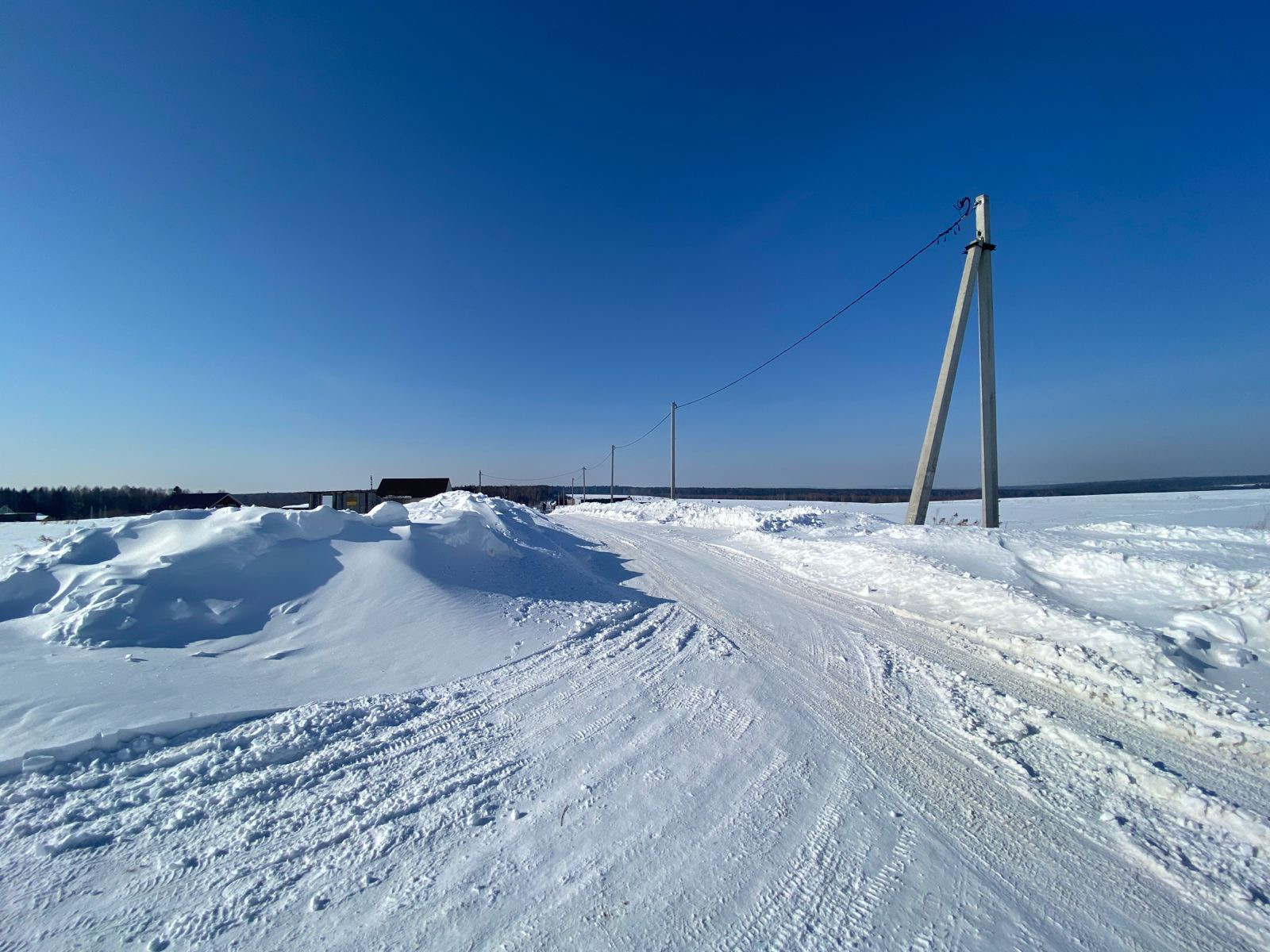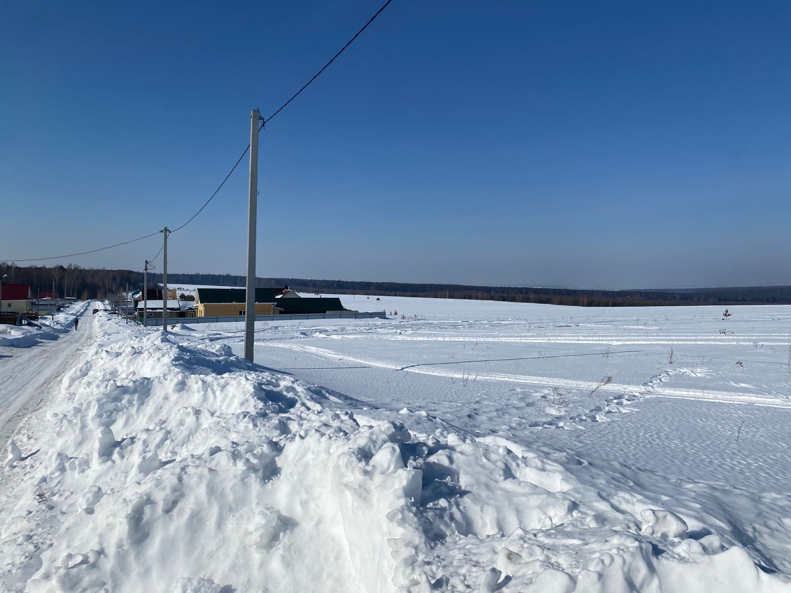 Электрический столб рядом с участком, газ в 2025 году, дорога отсыпана.