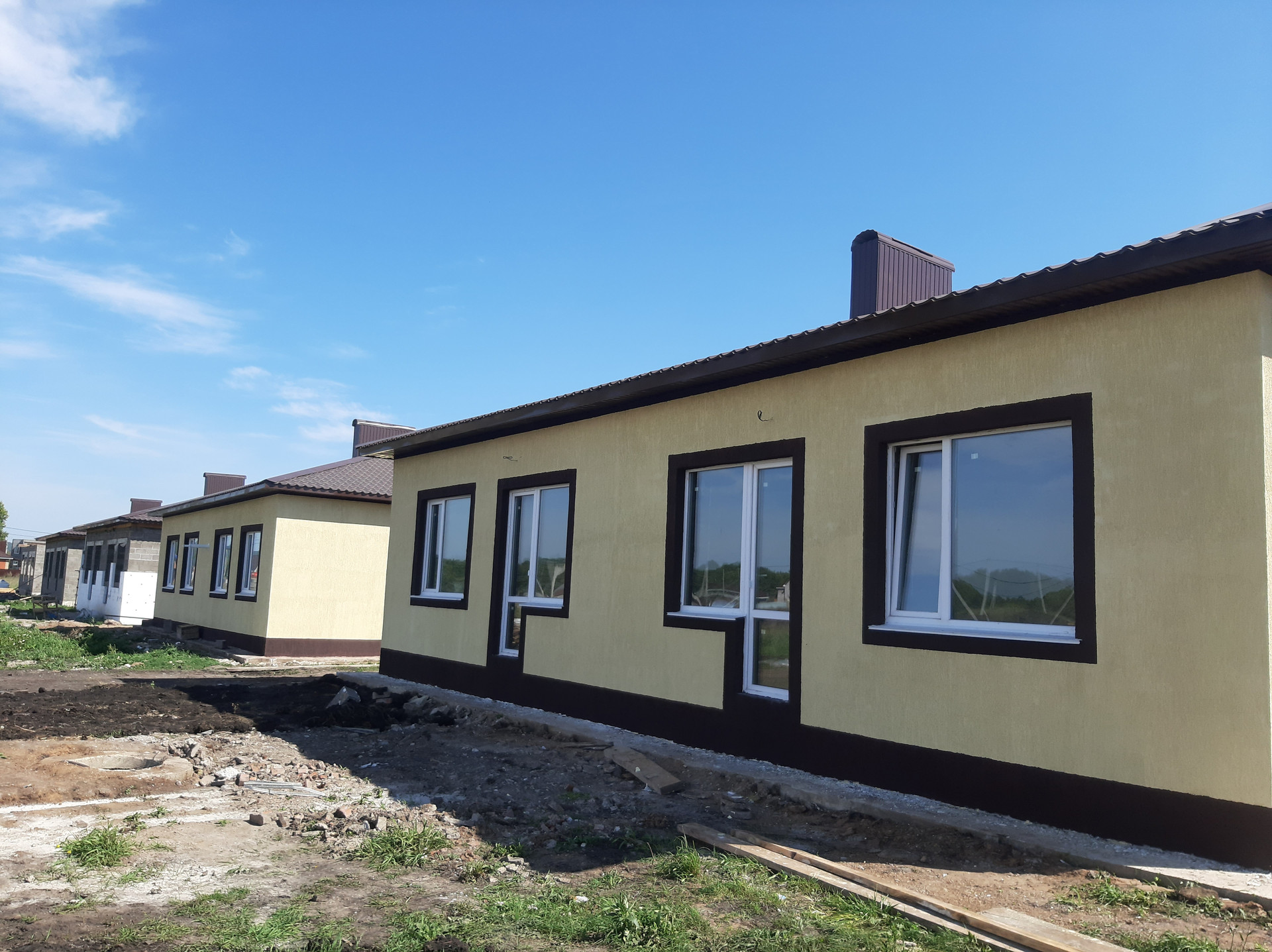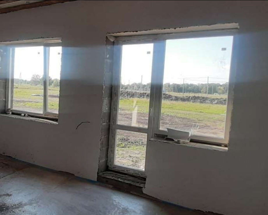 Дом с заведенными коммуникациями- газ, вода, электричество, канализация в получистовой отделке: стяжка пола, выравнены стены под маяк, разводка электричества и воды, натяжной потолок.