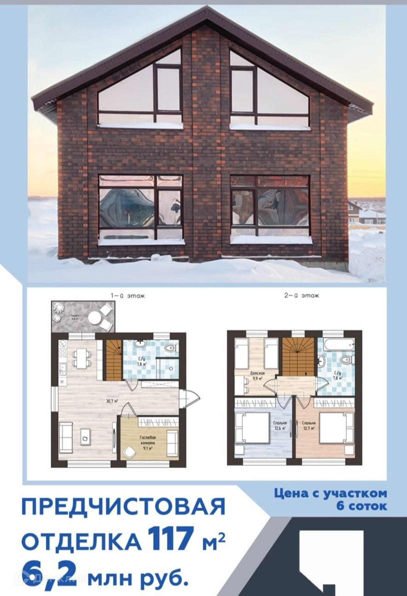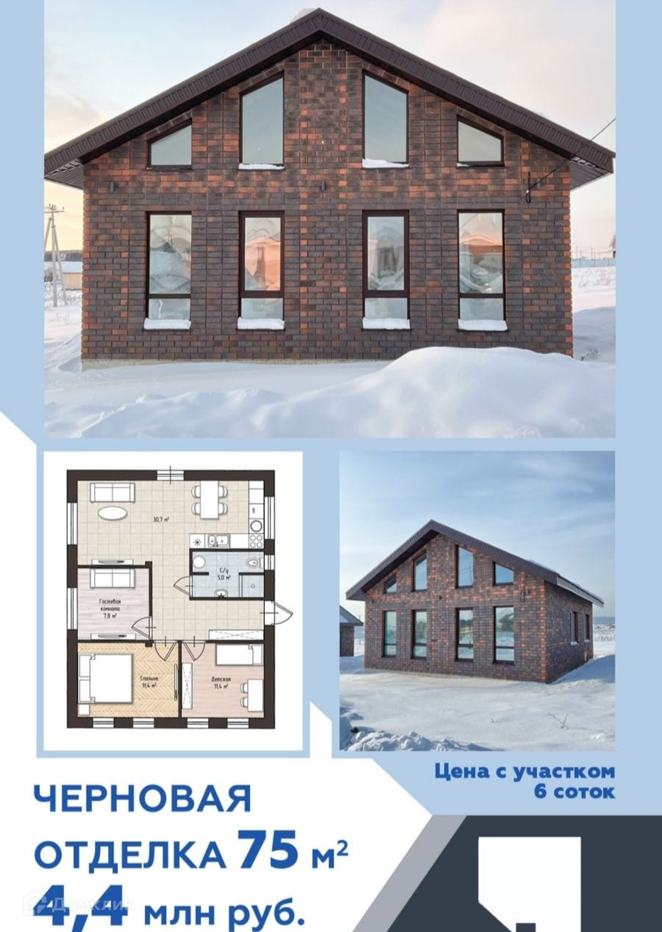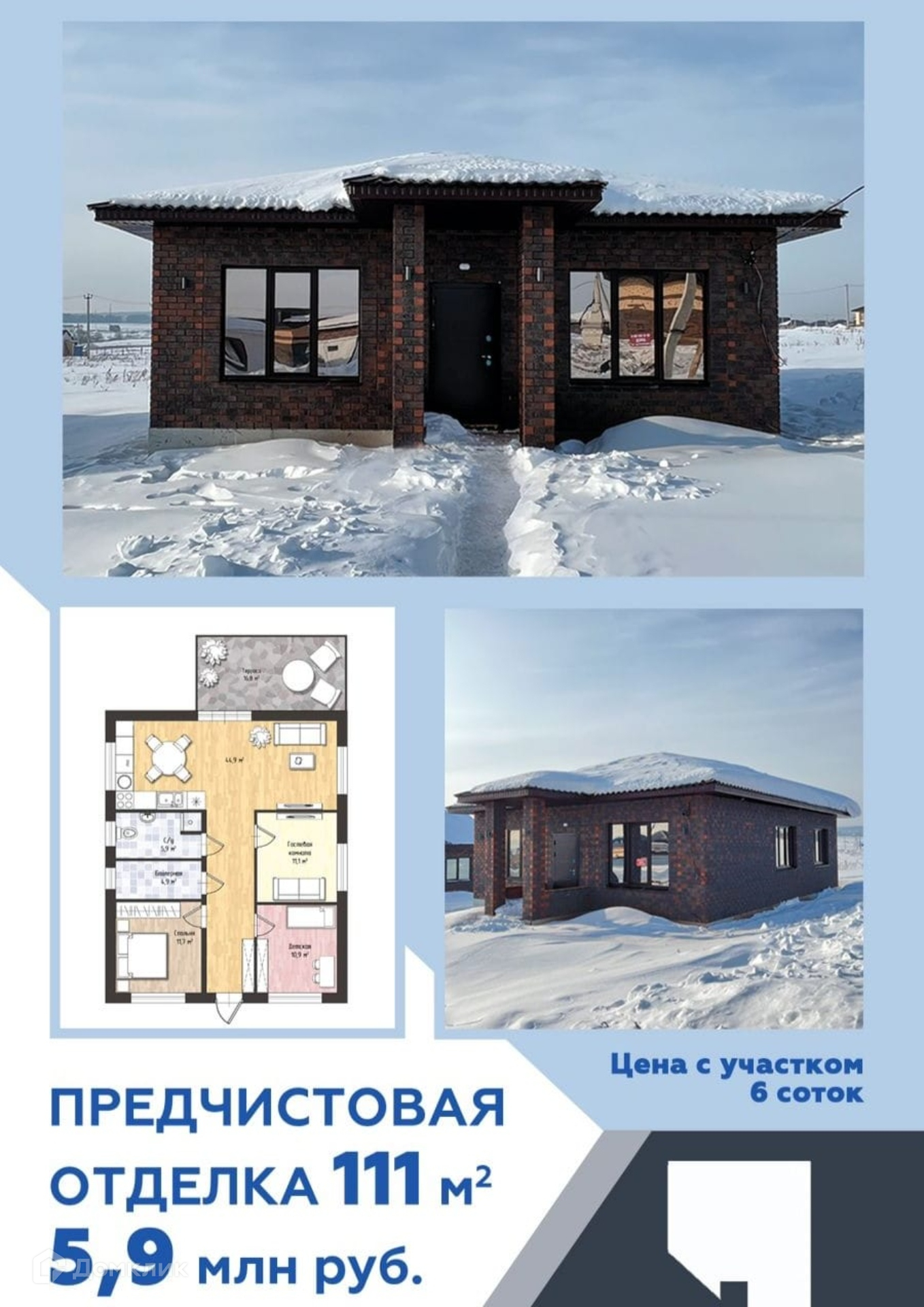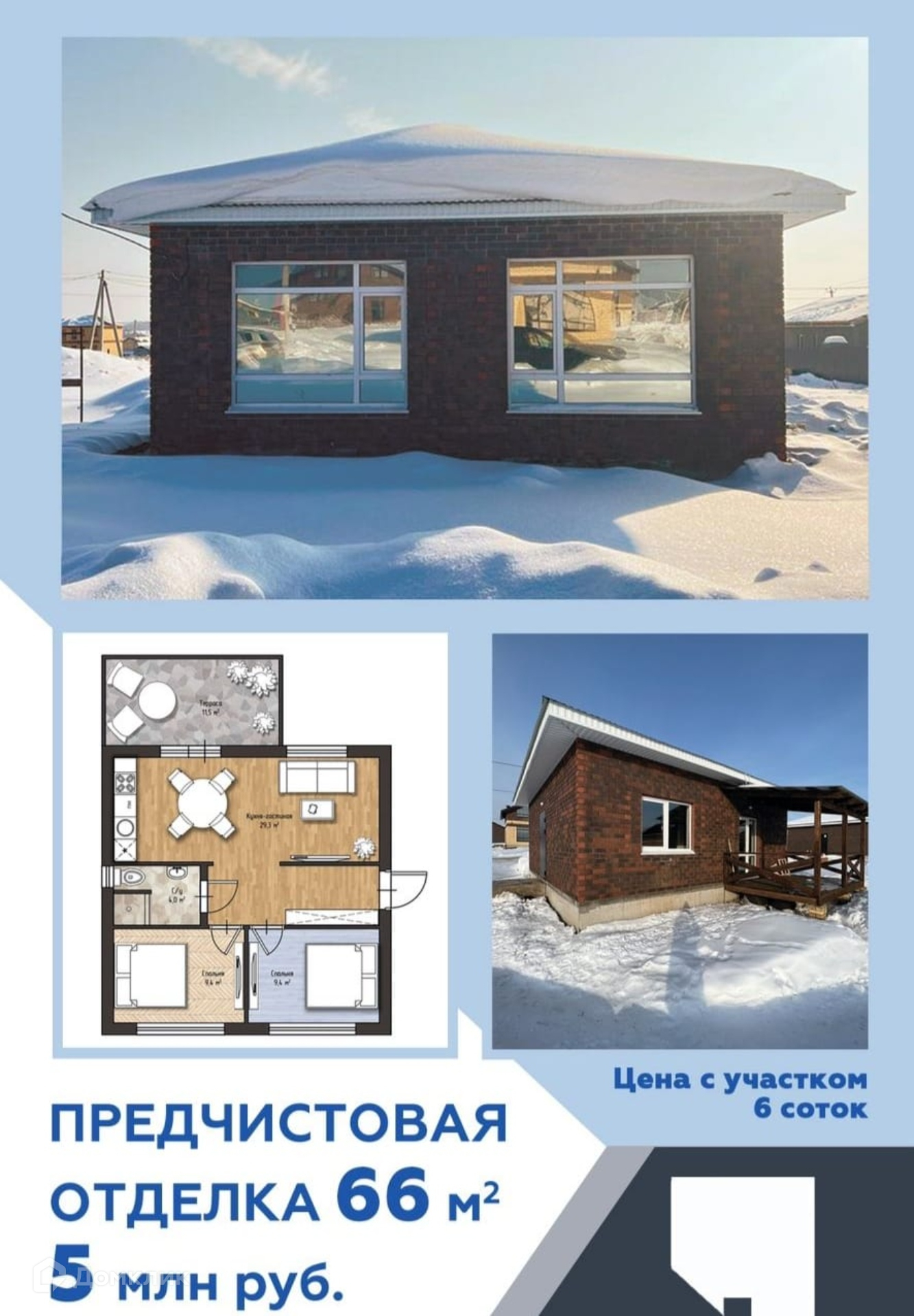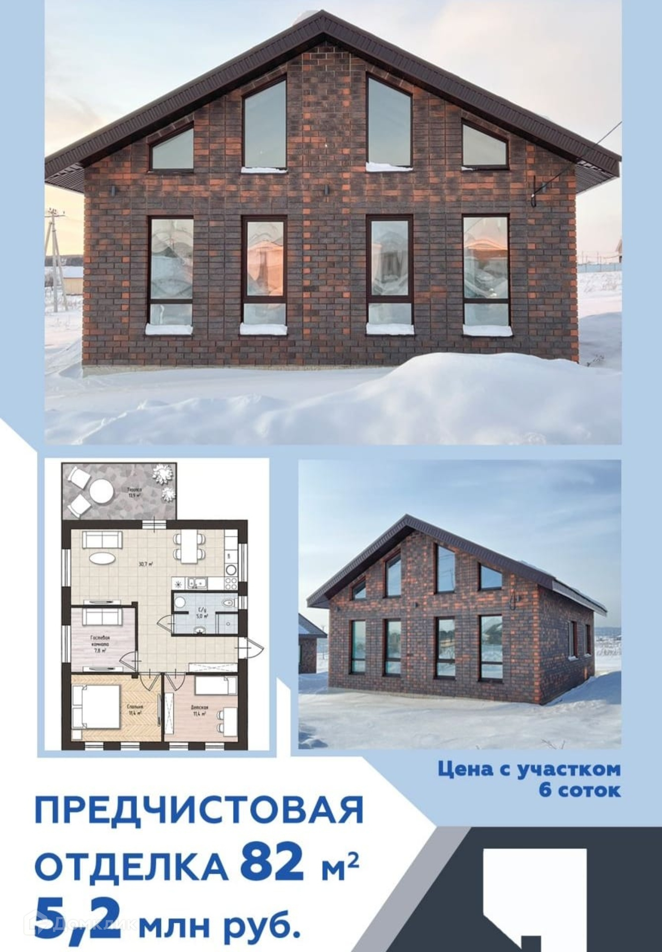 Цена дома указана в черновой отделке, получистовая отделка 5,2 млн.