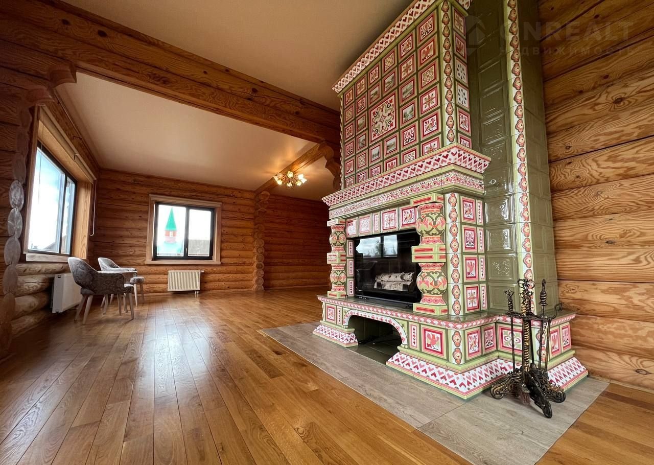 - Гостиная (47.9 кв.м.) с камином, облицованным изразцами ручной работы "Царская охота" (топка производство Франция), дымоход: керамический (производство Германия «Sсhiеdеl»);