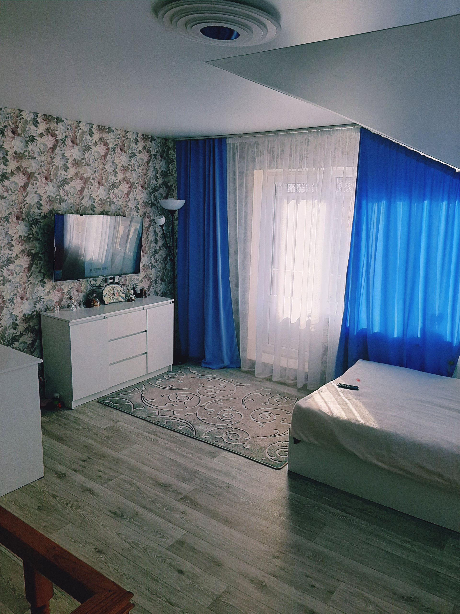 1этаж кухня гостинная, ванная, 2этаж спальня с балконом